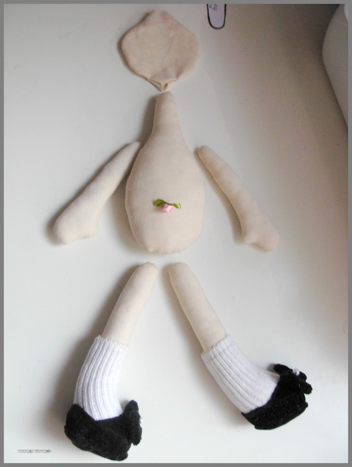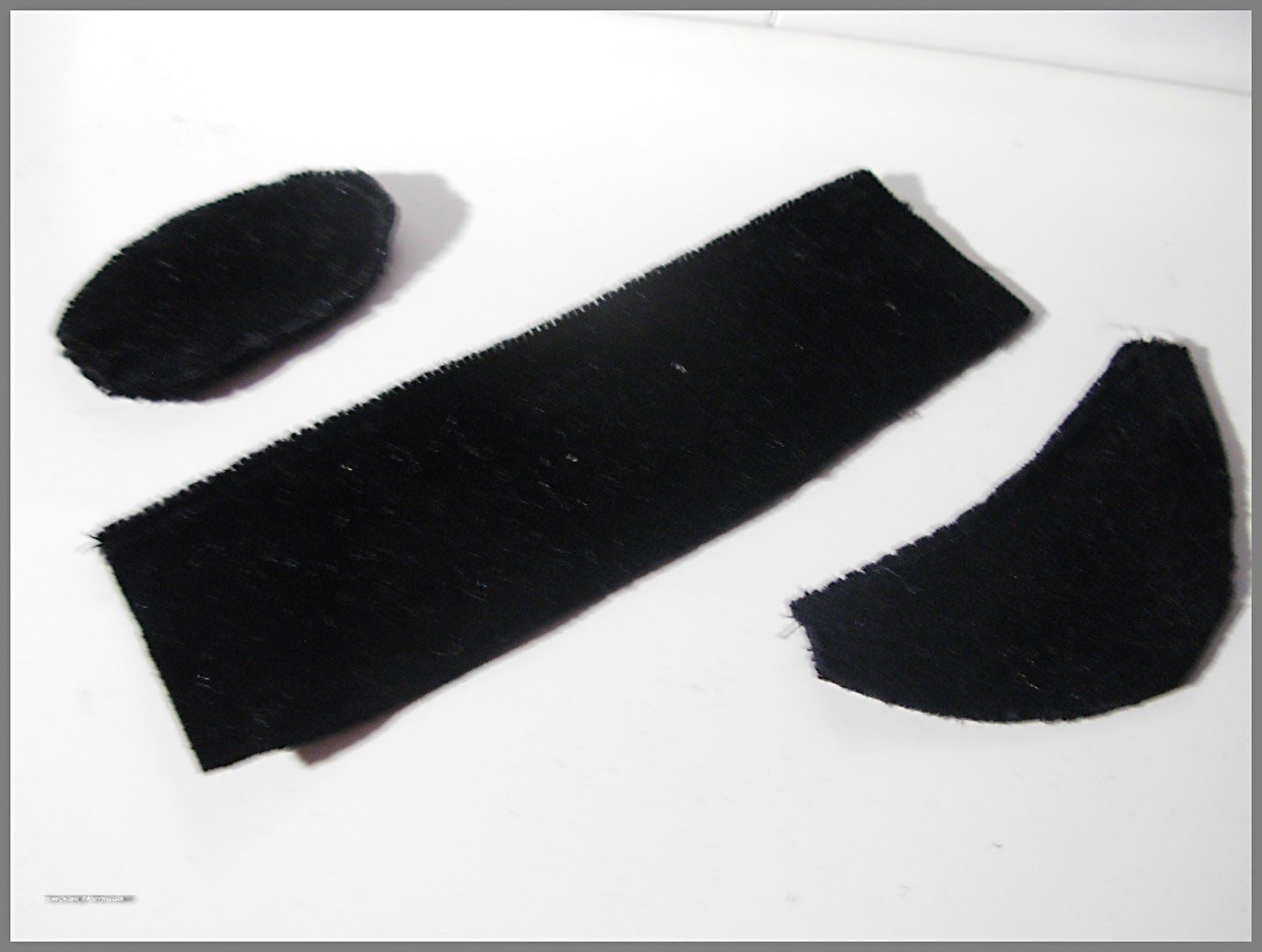 Это три детали туфельки -полукруг-это верх (мысок).Его подворачиваем и прошиваем по полукруглой линии ,прикладываем к ножке и пришиваем тоже по верху первым .Прямоугольник тоже одну из длинных сторон подворачиваем и прострачиваем ,это боковинка туфельки .Оборачиваем ей ножку и сшиваем по короткому шву (как колечко) .Ну и наша подошвочка .С ней поступаем как и с такой же деталью самой ножки , подворачиваем ,прикалываем и пришиваем потайными стежками . Если туфельки нужны съемные ,(я таких еще не шила ) ,то сборка думаю так же только с тремя внутренними частями и без пришивания к ножке