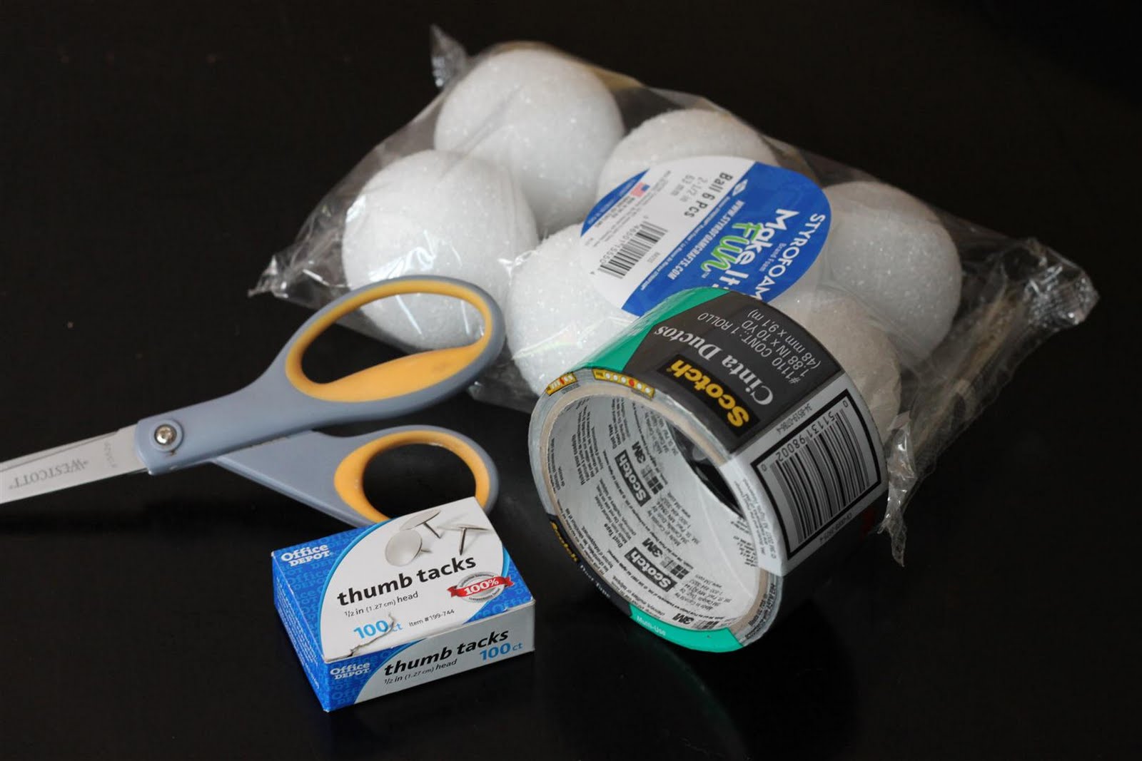 1. Вырежьте небольшие кусочки клейкой ленты от пяти до шести дюймов в длину. Затем разрежьте ленту вдоль на три полосы. Начать упаковки ленту вокруг шара из пенопласта. (Имейте части небольшой для того, чтобы свести к минимуму морщин.)
