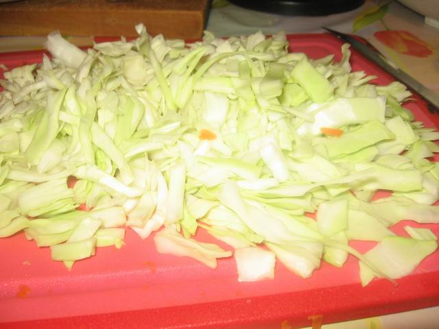 Капусту нарезать произвольно, не мелко-не крупно.
