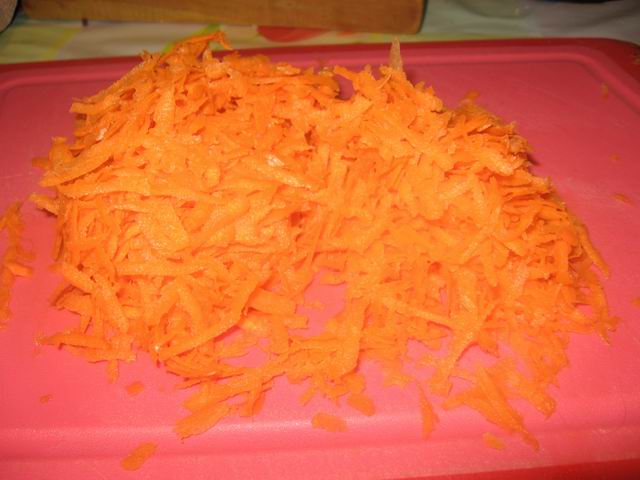 Морковь натереть на крупной тёрке.