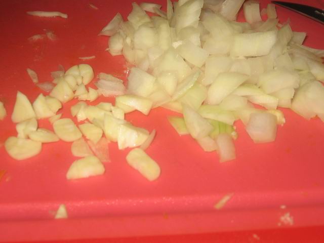 Нарезать лук и чеснок.