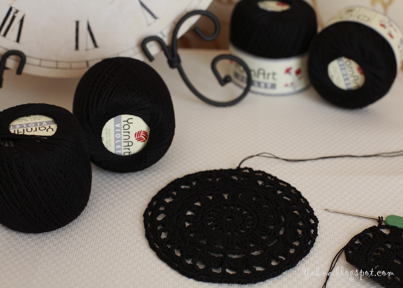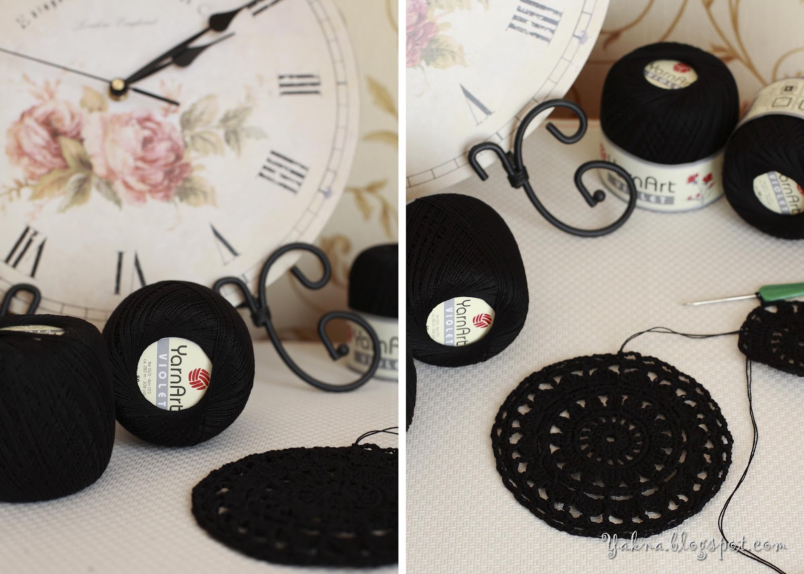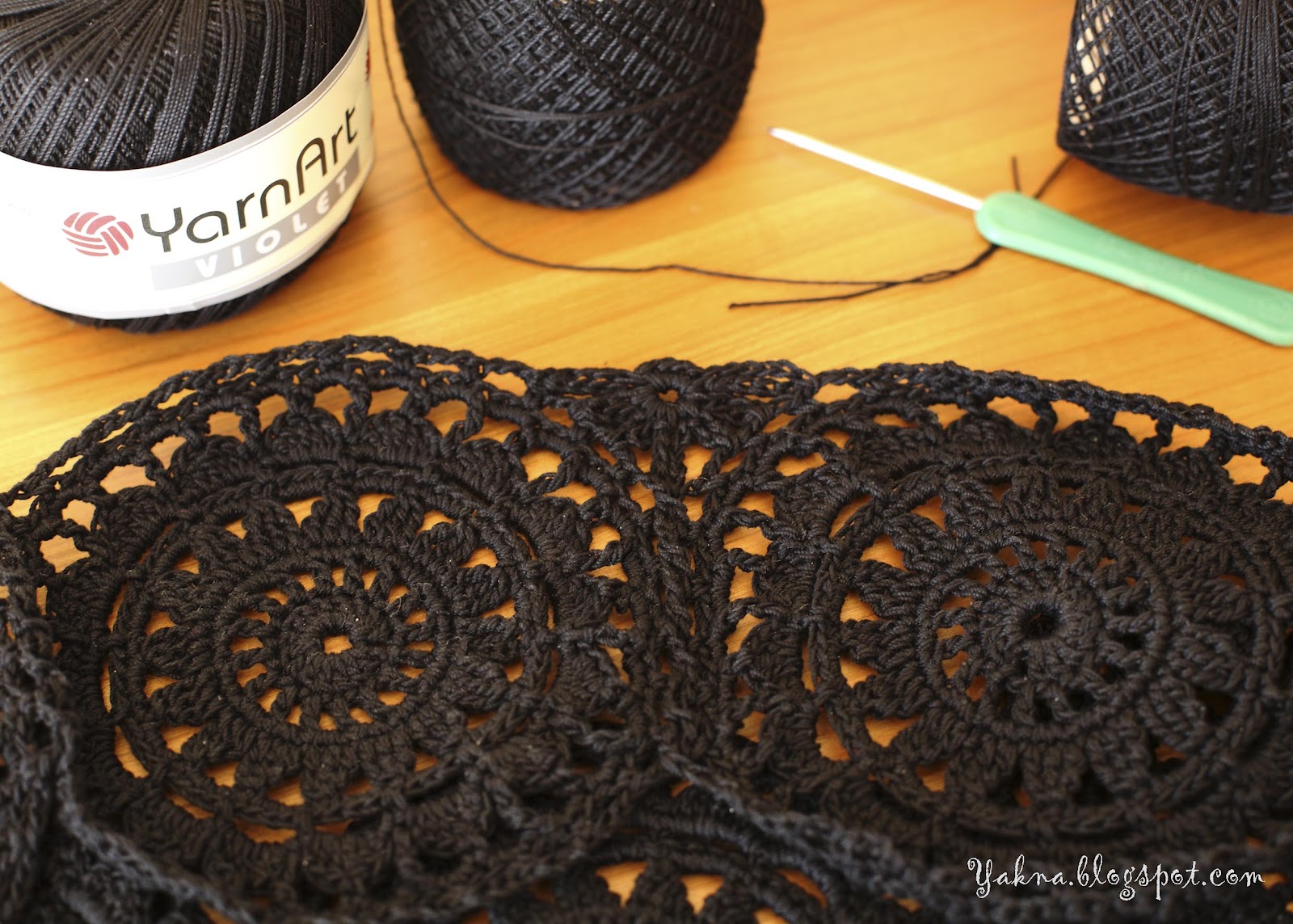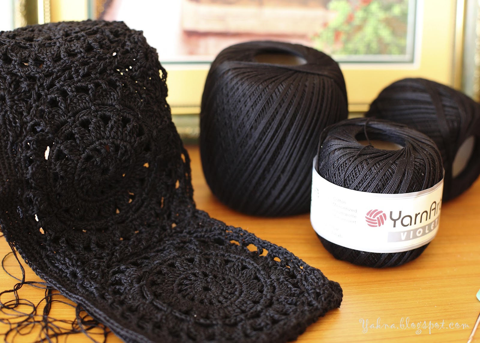 В этот раз сумка будет черной, я решила сделать ее плотнее, потому вяжу в две нитки. Хотя, конечно, можно было сразу купить нитки плотные. Но хорошая мысль пришла как всегда во время, а именно когда я уже совершила покупку и пришла домой с пятью мотками, чего теперь явно не хватит.