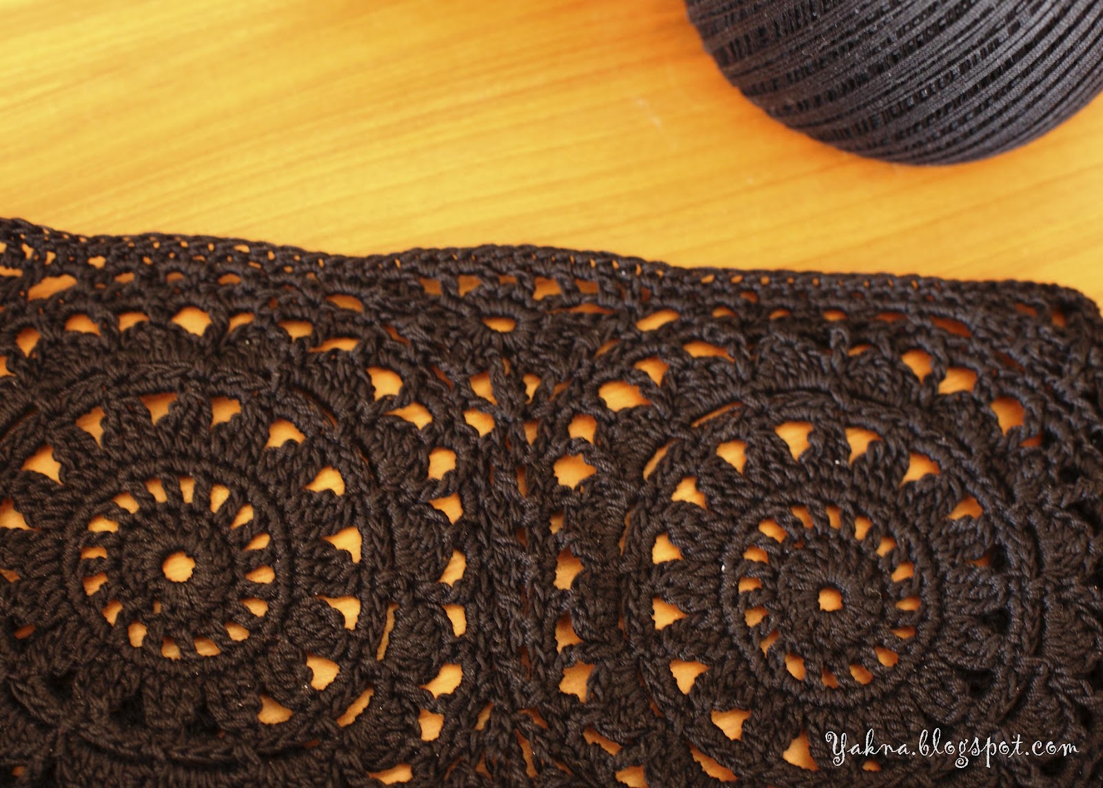 Я долго не могла придумать как же мне в одиночку показать вам кольцо из вязаных кругом, потому пришлось немного поэксплуатировать лошадь. :) Круги составляют нижнюю часть сумки, чтобы сделать ее прямоугольной нужно сверху и снизу связать по 6 простеньких элементов.