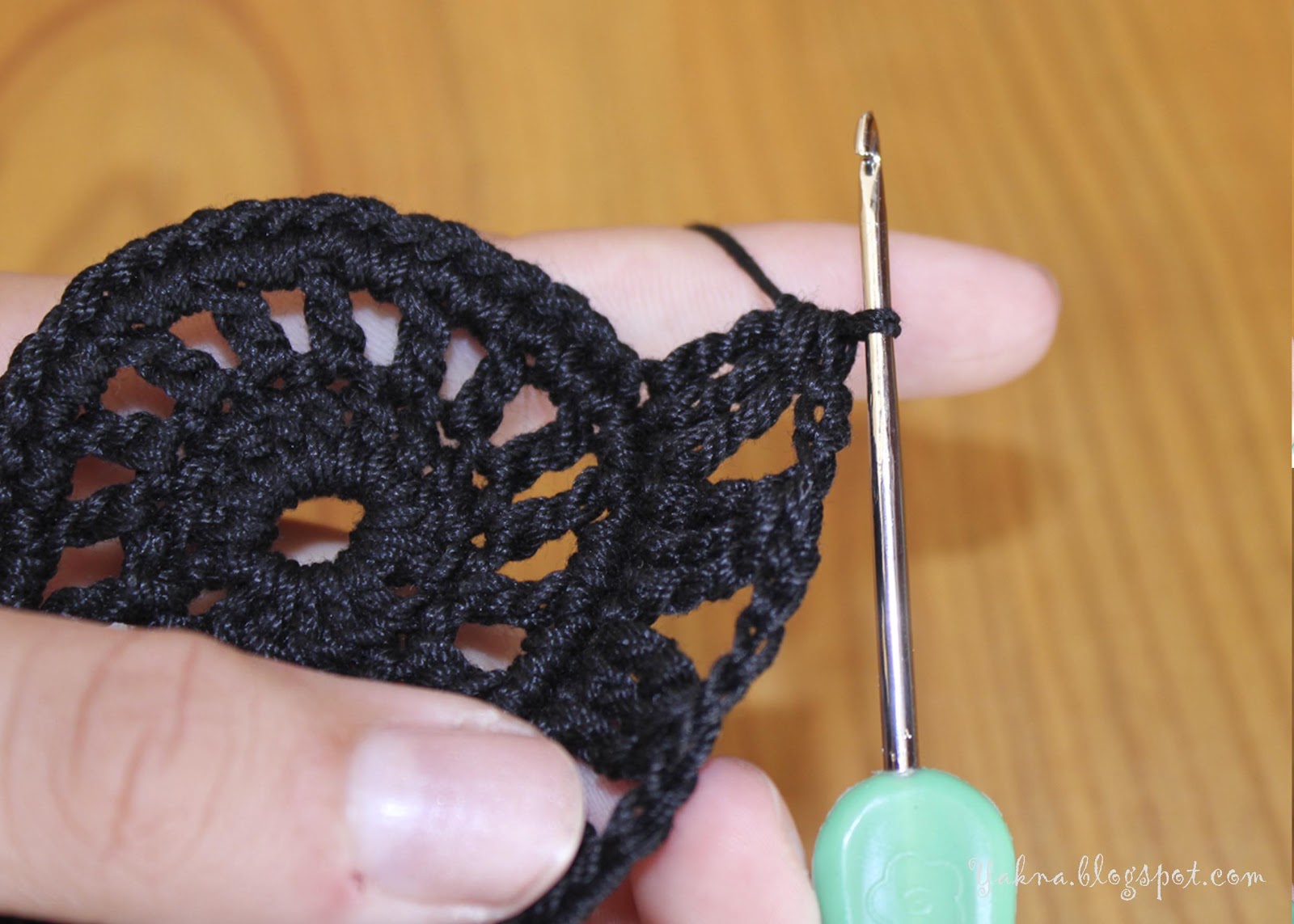 2-й р.: 3 возд. петли подъема, 1 возд.петля, (1 ст. с накидом, 1 возд. петля) -15 раз, соединительная петля.