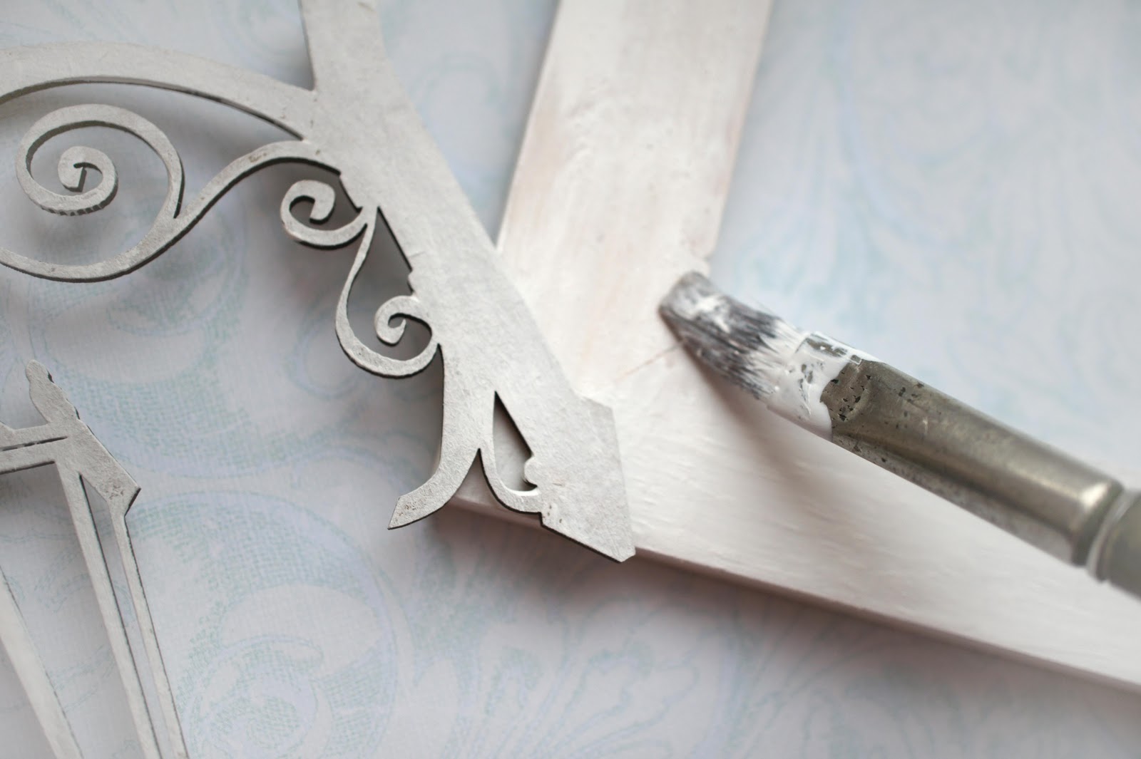Шаг 1. Покрываем белой краской рамку и вырубку из чипборда.