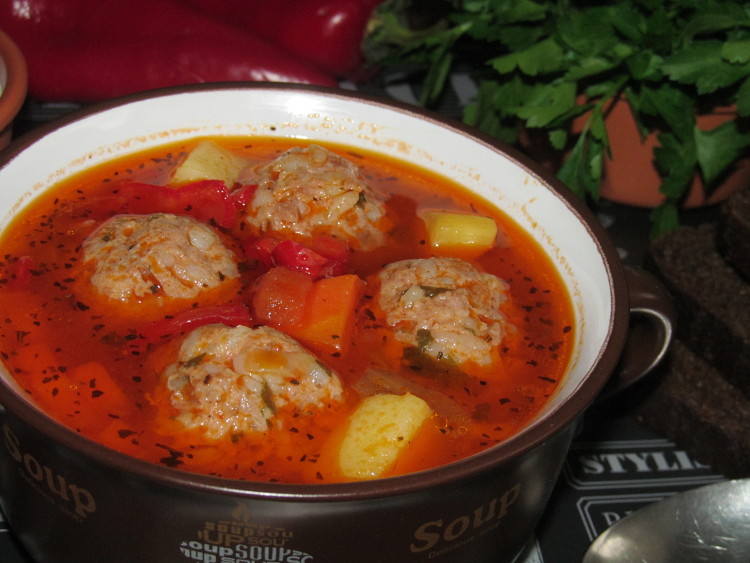 Добавить тефтели в суп и варить 20-25 минут на небольшом огне.