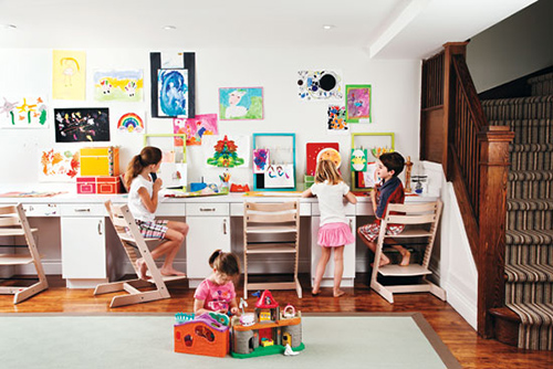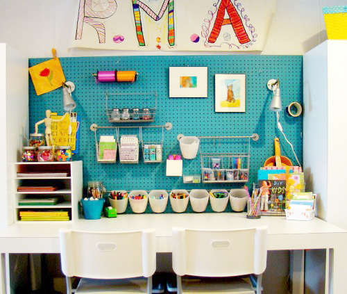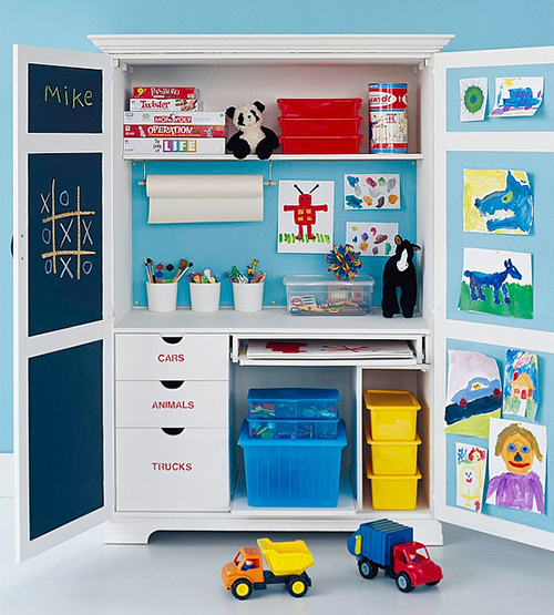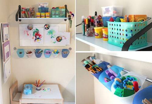 Вот примеры организации детского пространства и идеи хранения всевозможных материалов для творчества.