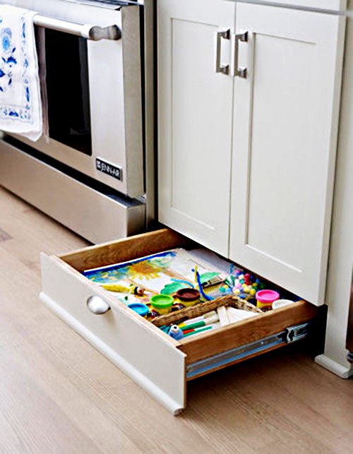 Если нет лишнего места, то материалы для творчества можно хранить и под шкафом и под кроватью)