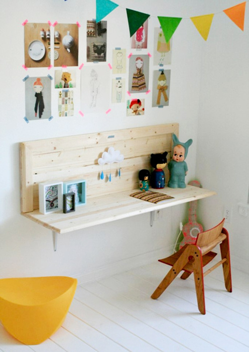 И даже если для стола места не достаточно, то можно соорудить не менее удобную рабочую поверхность из полки.