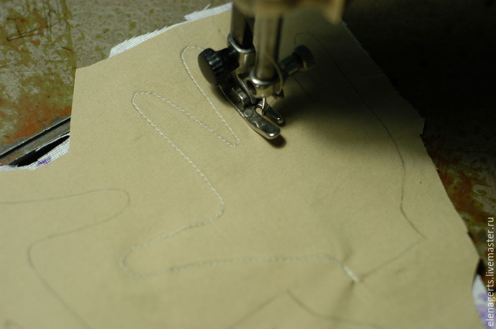 Пришиваем готовый каркас к туловищу с горбом. Соединяем две детали туловище с горбом друг с другом и прошиваем по периметру.