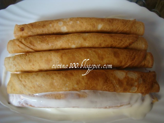 Крем : 350-400гр.сметаны,150-200гр сахара,1п.ванильного сахара.Все размешиваю(не взбиваю) и даю постоять(периодически помешивая) пока готовлю блинчики.