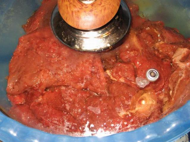 Приготовленное таким образом мясо сложила в чашку и отправила на ночь в холодильник.