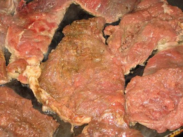 На следующий день продолжаю заниматься мясом. Его надо обжарить до образования румяной корочки.