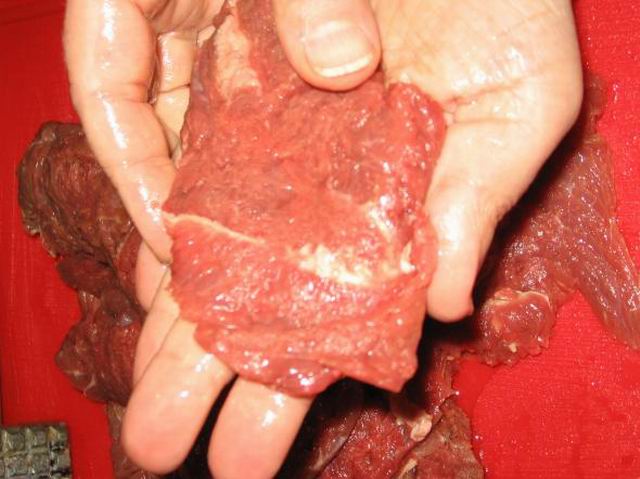 Мякоть мяса нарезать порционными кусками.