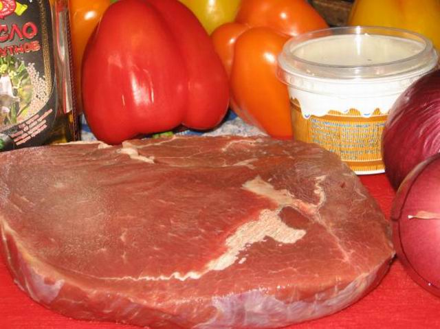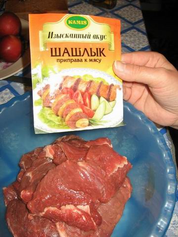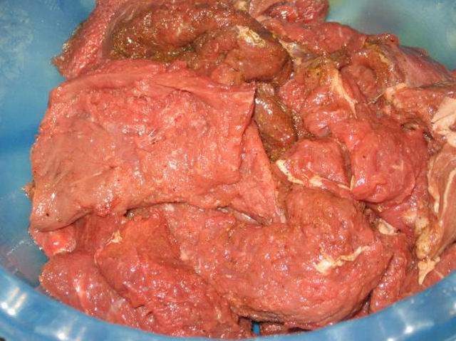 Во первых я замариновала мясо на ночь. Оно так стало намного мягче и нежнее.