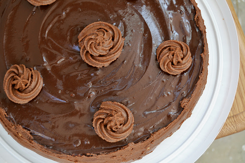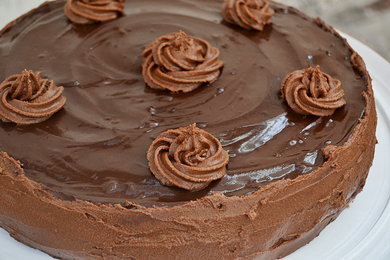 23. Бока обмазать кремом. Т. к. крем у меня еще остался, я заправила его в конд. шприц и украсила торт фигурными "шляпками".