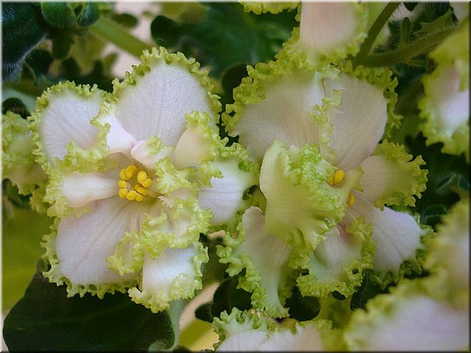 Если вы ждете цветения белой фиалки, то ей больше всего понравится полочка повыше, где теплее всего, а вот сорта с зеленой окантовочкой любят прохладу, в таких условиях сформируется настоящая изумрудная лента, которая в жаре никогда не проявится.