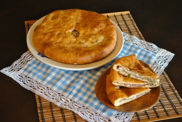 Подать осетинские пироги можно с натуральным йогуртом, смешанным с давленым чесноком.
