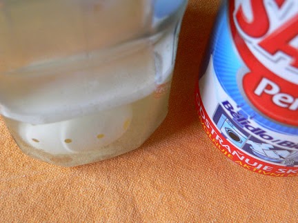 4. Чтобы после сверла в дырочке не остался мусор, положим скорлупку в хлорный отбеливатель и прямо на глазах все мелкие опилки растают. После этого яйцо хорошо промыть холодной водой - коричневые яйца станут белоснежными.