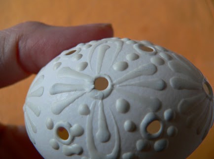 Не рекомендуется делать много дырочек. Во-первых, яичко может треснуть, а во-вторых, когда между дырочками мало места, трудно наносить воском орнамент.