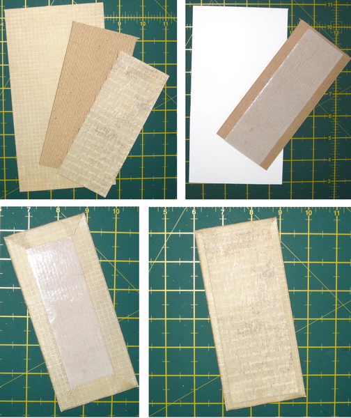 Следующий шаг - начинаем «одевать» вставки (заготовки из картона 2х15 см) между станицами в бумагу того же цвета, что и наши листы в альбоме, но меньшей плотности, с помощью двустороннего скотча или клея ПВА. Если для вставок Вы используете белый картон, то это можно не делать.