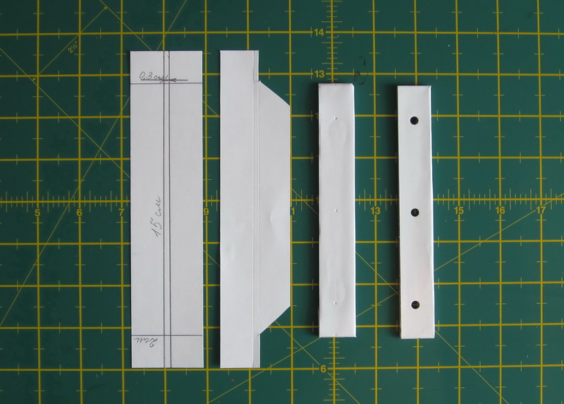 Затем также делаем отверстия в наших вставках на расстоянии 2, 7,5 и 13 см от верхнего края посередине.