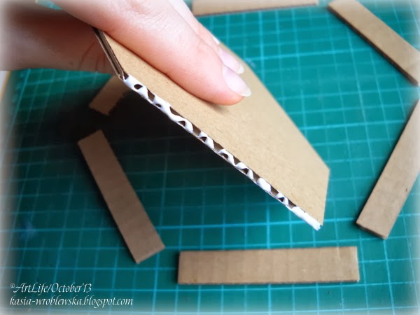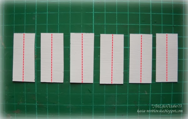5. Przyszykujemy 6 полос обычной бумаги (4.5x3 см). Они будут служить, чтобы укрепить углы таким образом, мы согнуть их. видимым на фотографии линии.