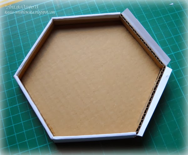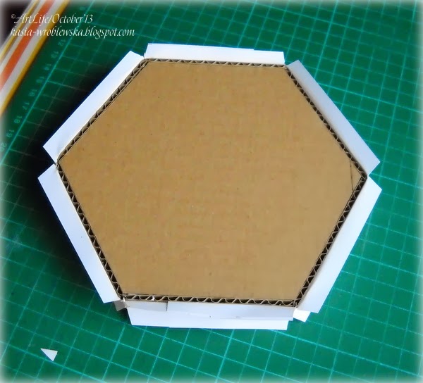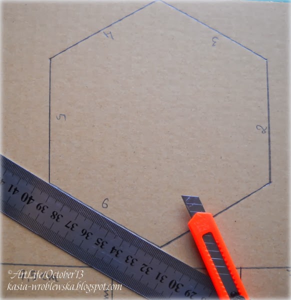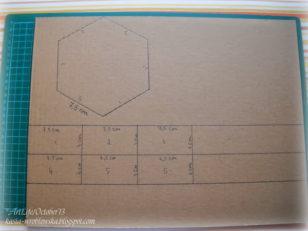 1. На картоне нарисуйте шестиугольник шестиугольник (или шестиугольник). Для этой процедуры, вы можете использовать шпаргалку - печать готовый шаблон.