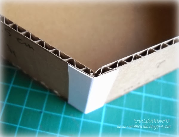 15. Следующий этап - застывает крышку. Вот почему мы ставим его на коробке, стене клеем и Охватывая широкий полоску бумаги. Я использую в этот простой бумаги в принтер.
