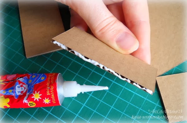 14. Внимание! Клей крышку немного по-другому. На этот раз, если мы клей дно к стенкам, а не наоборот. Во всяком случае, я думаю, что фотографии ниже вы можете увидеть, как это сделать :)