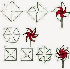Вертушка для обложки: вырезаем квадрат 5х5 см, делаем надрезы не доходя до центра 1 см. Далее в одном направлении углы загибаем к центру, склеиваем, крепим брадс, собираем на деревянную палочку (можно использовать зубочистку).