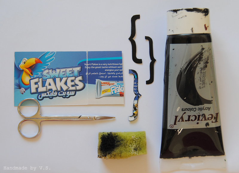 Я беру обычный упаковочный картон (чистый и немятый)), рисую на нём нужную мне форму скобочки и вырезаю маникюрными ножницами. Можно сделать плотную заготовочку а-ля чипборд, склеив две скобочки вместе, но здесь я не стремилась к объёму (только к форме).