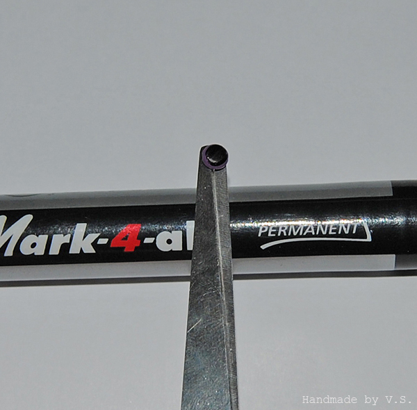 Затем берём черный перманентный маркер (этот цвет нам подходит по мрачности и мужественности альбома)) и закрашиваем металлическую шляпку чёрным цветом.