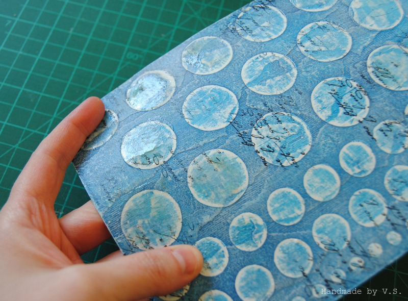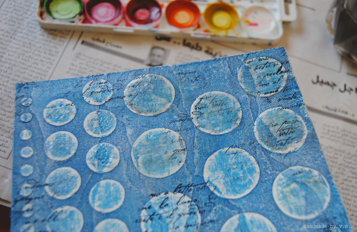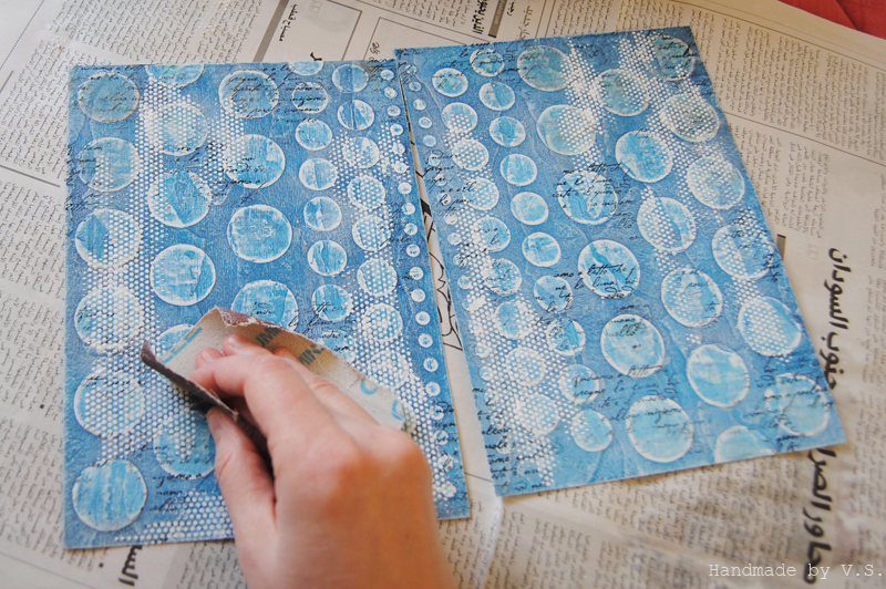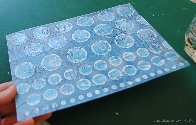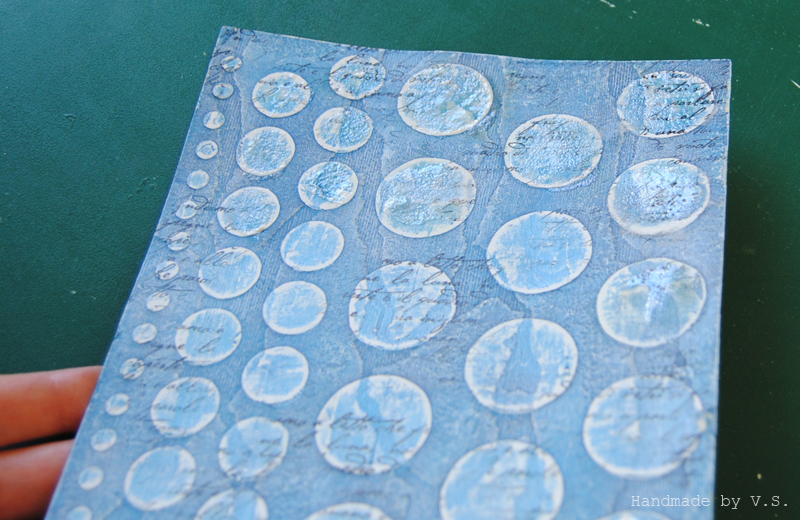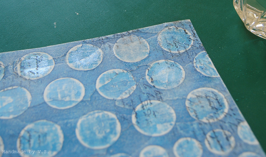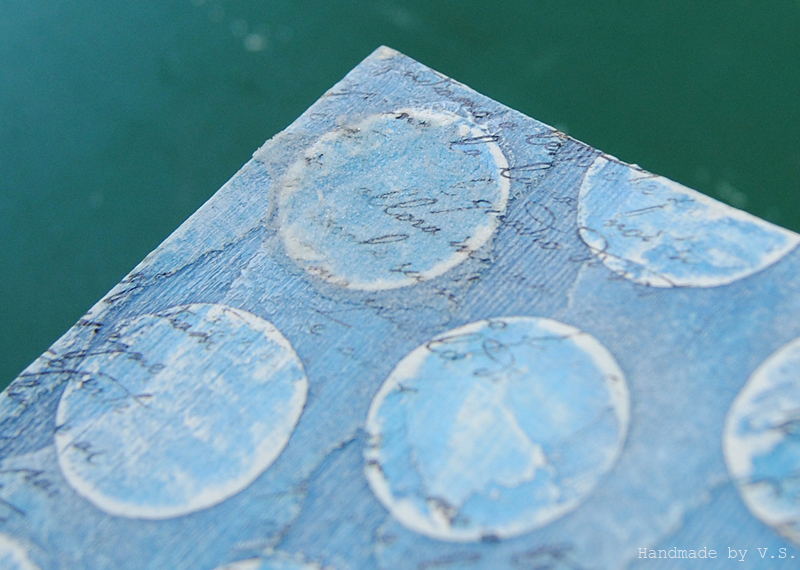 Что нам тут важно: чуть смягчить синеву фона, чуть сгладить выраженность крупных кругов, ещё чуть-чуть усложнить наши и без того сложные рельефы.... а кому-то это может помочь скрыть косяки эмбоссинга и штампинга ))) ну если самой пастой не наделать больших косяков (которых, кстати, можно избежать, если не дать ей высохнуть и вовремя стереть - частично или полностью).