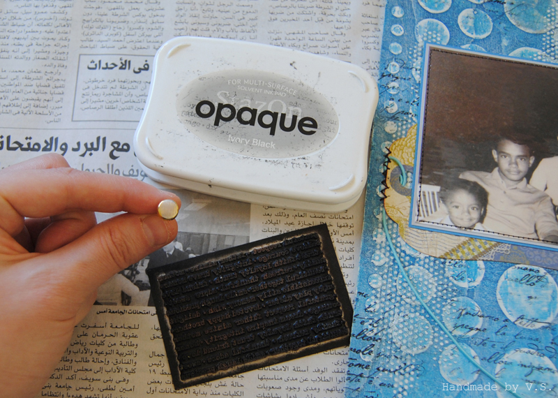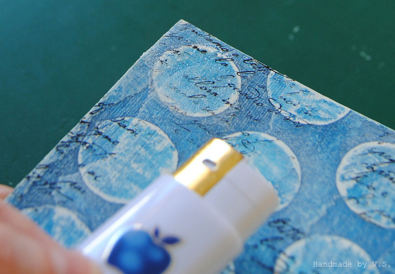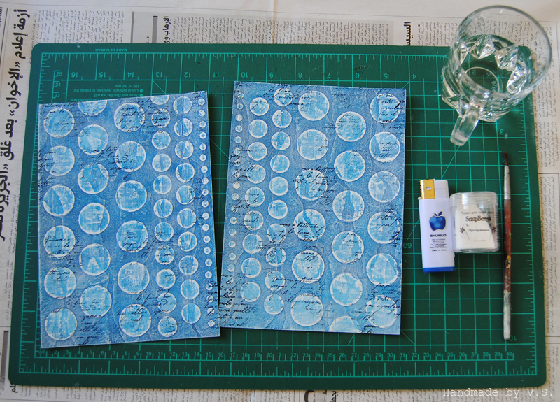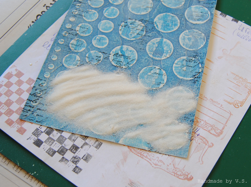 Здесь (и не только здесь) обратите внимание, как штампинг рукописным текстом выделился при эмбоссинге прозрачной пудрой - буковки как литые! вот поэтому я так рекомендовала именно стазон для штампинга фона ))