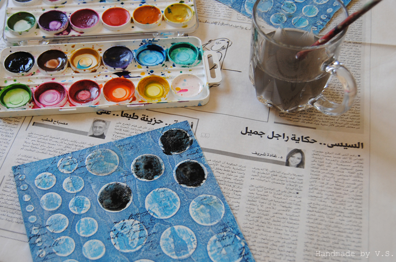 Так как чёрный в трещинках меня устроил, я нанесла чёрную акварель по всем кругам с трещинками.