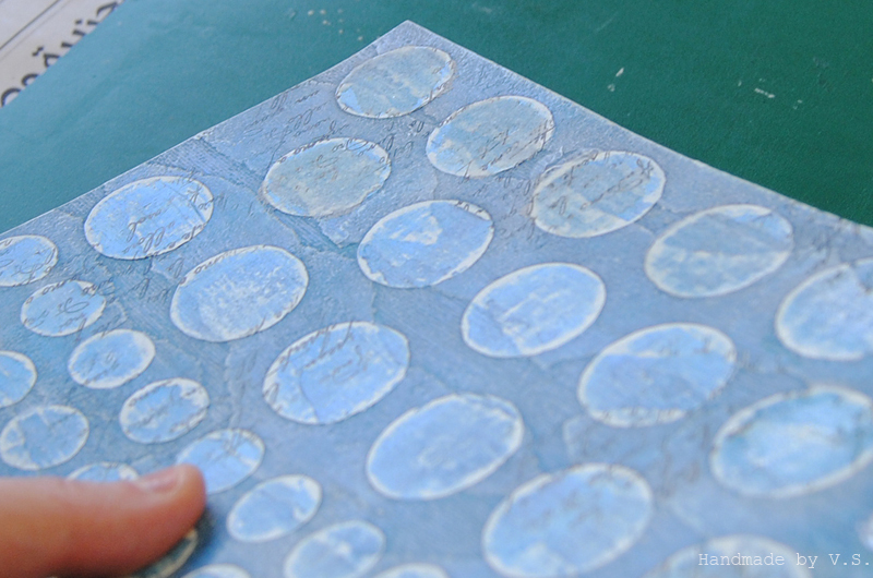 Делаем это аккуратно, не усердствуя, просто в разных направлениях сминаем фоны в области каждого кружочка так, чтобы по его поверхности пошли видимые глазу заломы. Крупные заломы мнём на более мелкие, получая не только вертикальные, но и горизонтальные трещинки.