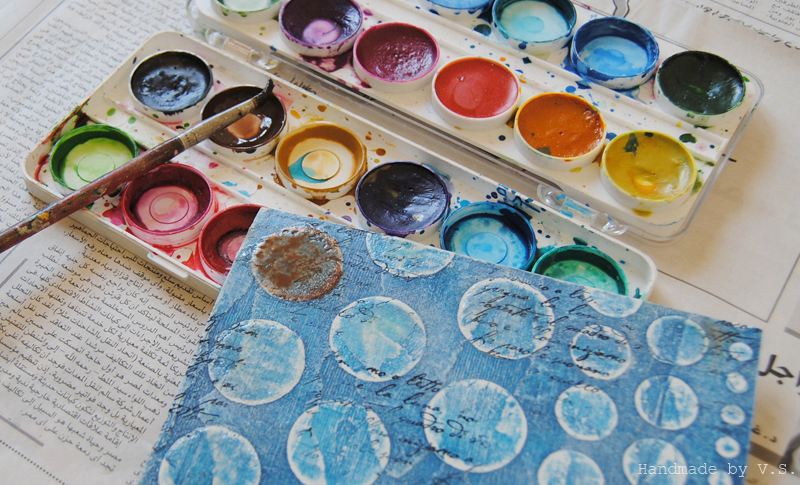 Так как пудра была прозрачной, то трещинки будут почти не видны, и знать он их будут только те, кто их, собственно, заламывал )) Поэтому берём акварельные краски и наносим аккуратно маленькой кисточкой на поверхность одного кружочка.