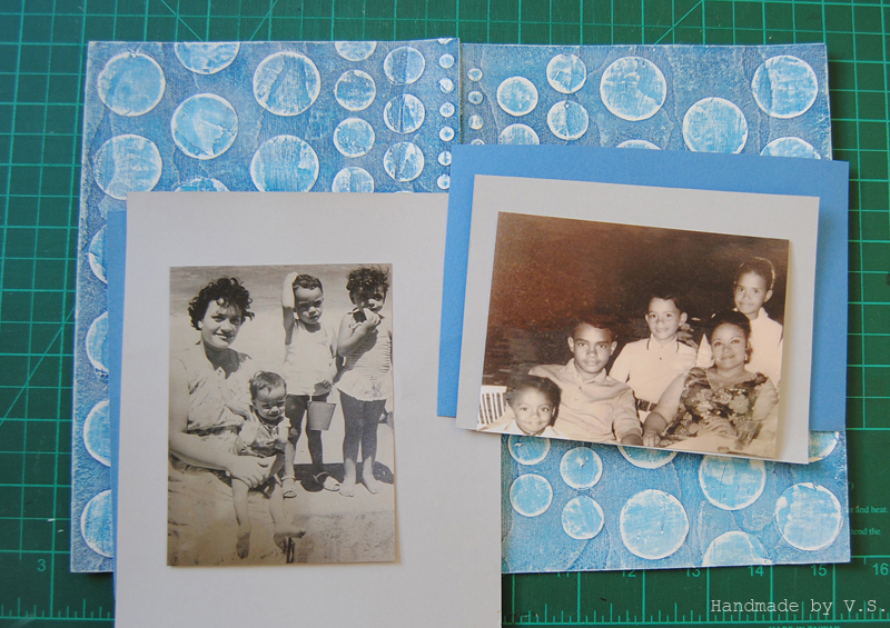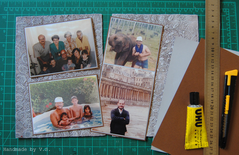 Приклеиваем фото резиновым клеем на серый картон (я намазываю клей по всей поверхности).