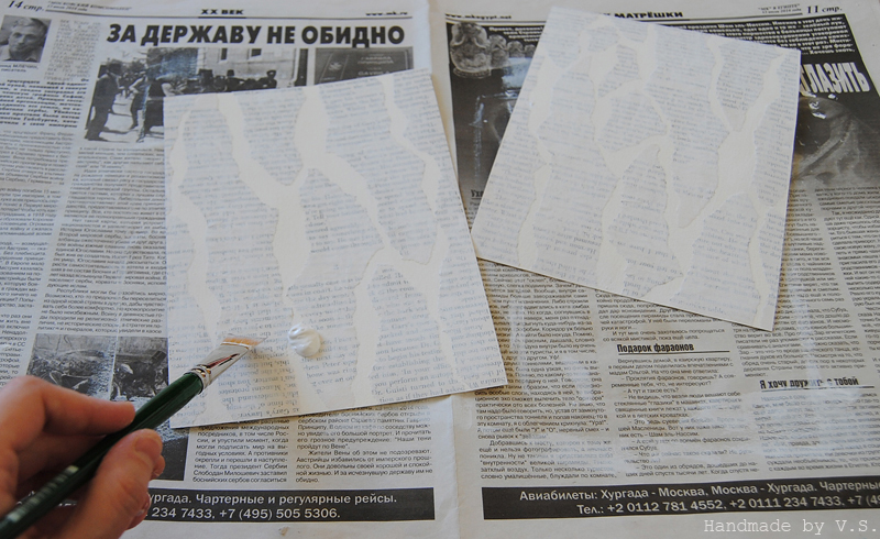 Прикладываем к страничке, наносим текстурную пасту. И так несколько раз, в соответствии с задумкой расположения узора.