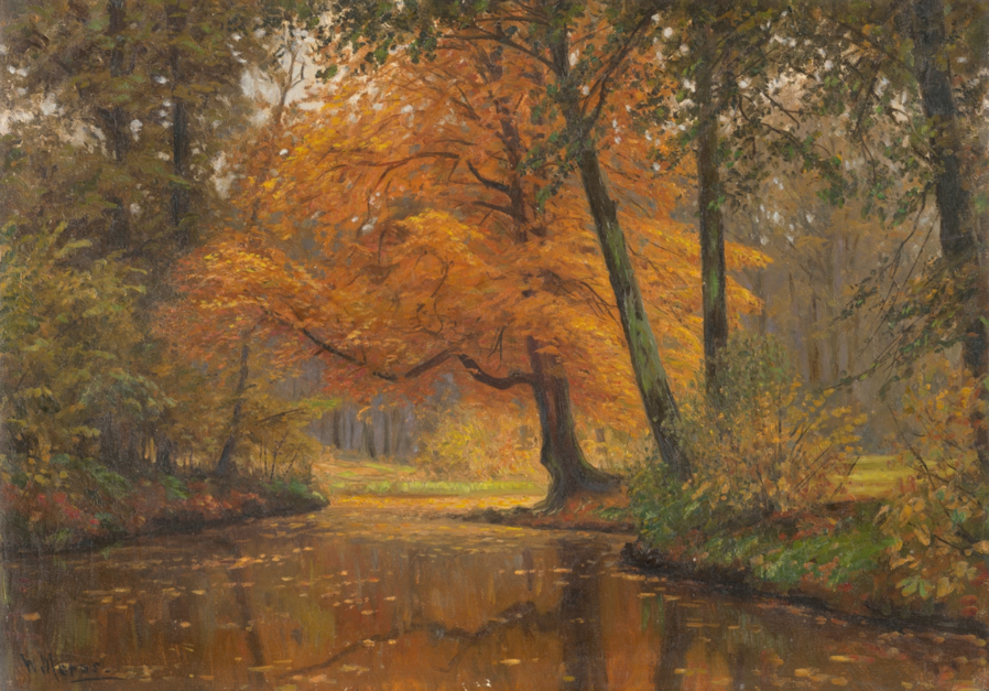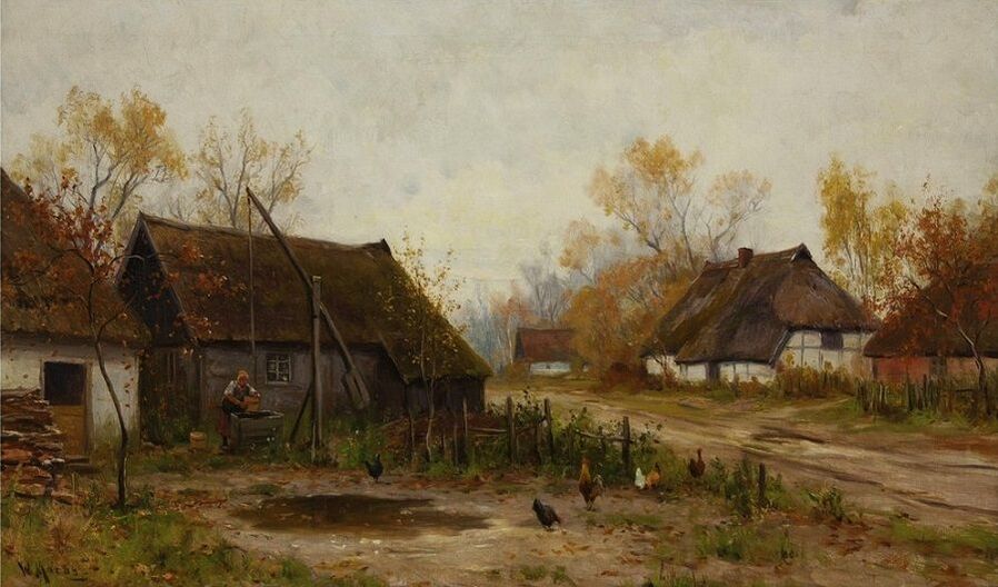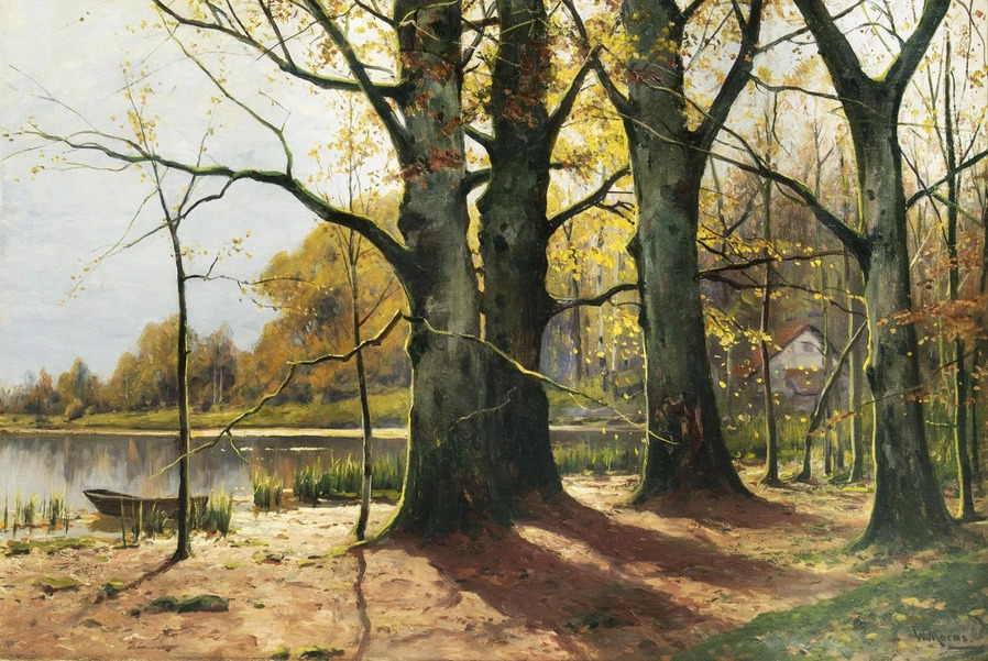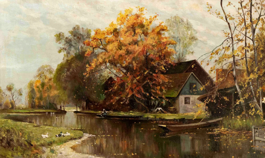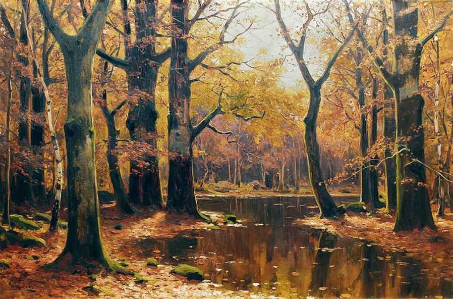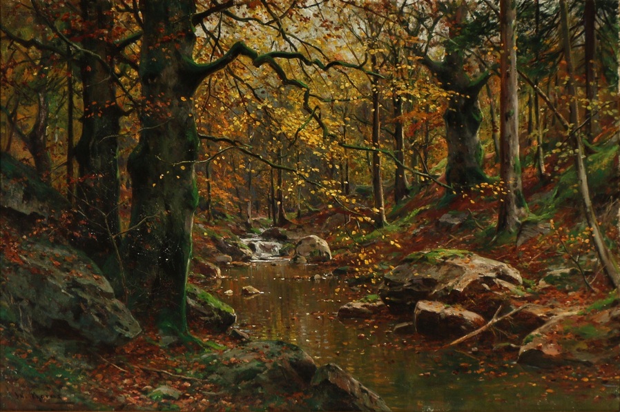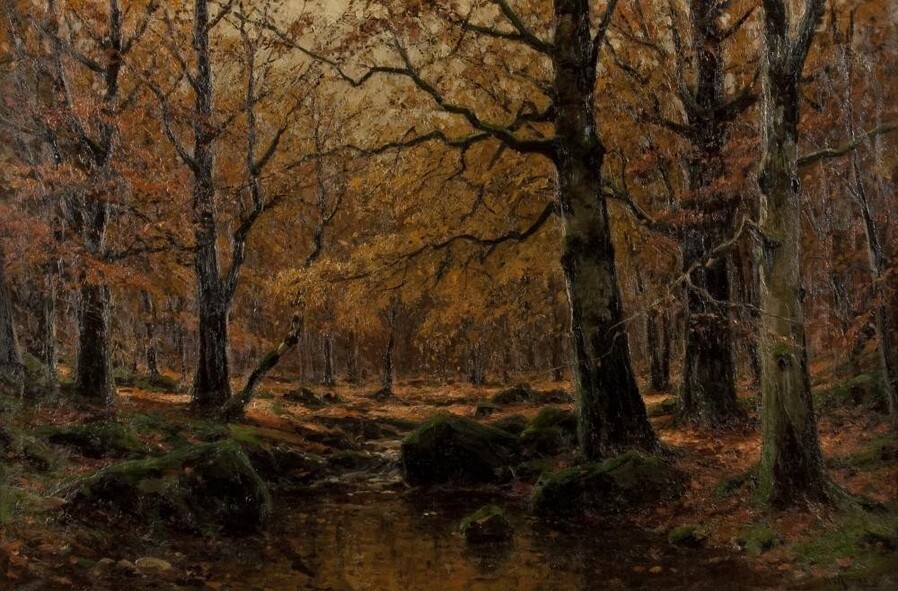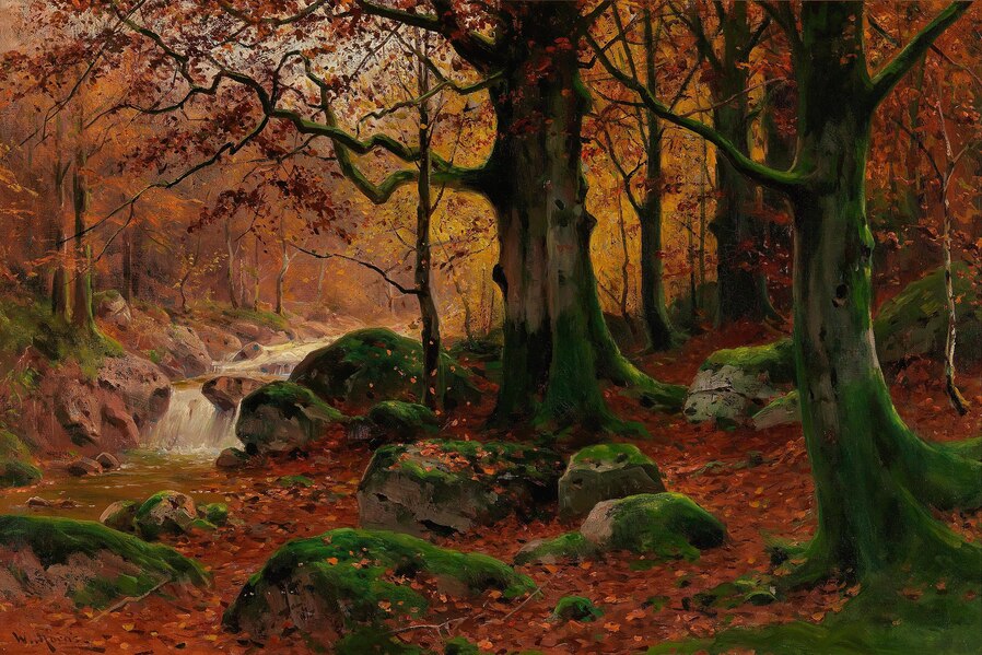 Все работы художников Moras здесь Художники Moras: Отец Вальтер Морас/Walter Moras (German, 1856–1925) АукционноОсеннеПейзажное (часть-2) Сегодня осень в дверь мне позвонила, Стояла на ступеньках и ждала. Я обомлела, когда Ей открыла, Такой она волшебною была! Копна волос красивых, ярко-рыжих, Точёный нос, румяность алых губ, И взгляд такой шальной от глаз бесстыжих, Сплошная ласка, кто здесь будет груб? Я ошарашено в дверях посторонилась, Она прошла и прямо вслед за ней, Такая красота вдруг ветром взвилась, Что не было её милей, родней… Мы пили чай вприкуску с листопадом, Всплакнули вместе проливным дождём. О, Осень — ты души моей отрада! Богат душой, кто осенью рождён… Когда она ушла, я очень долго Смотрела в дверь, не смея дверь закрыть! А с неба падал снег… На память только, Рябины грусть и образ, что нельзя забыть. (Лариса Рубальская)