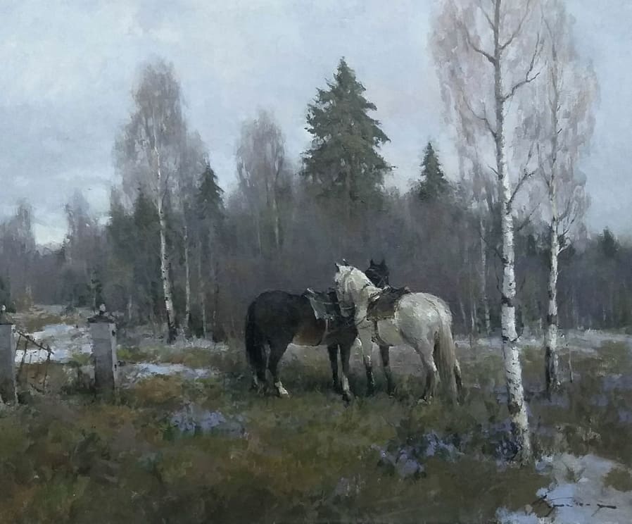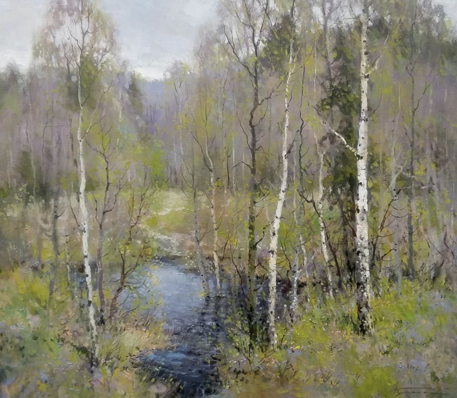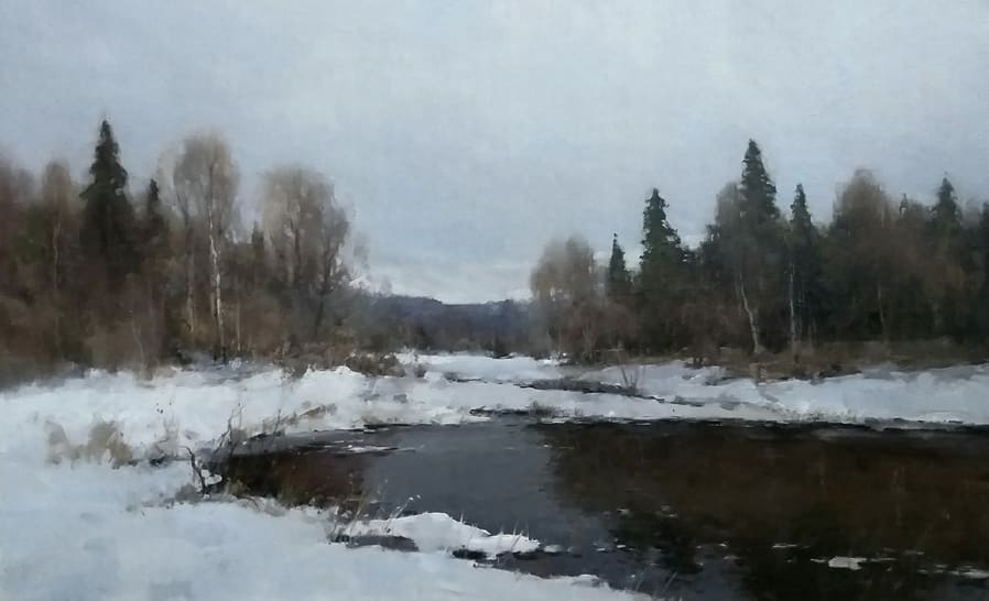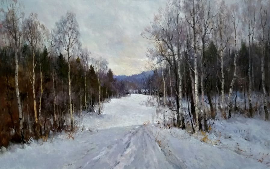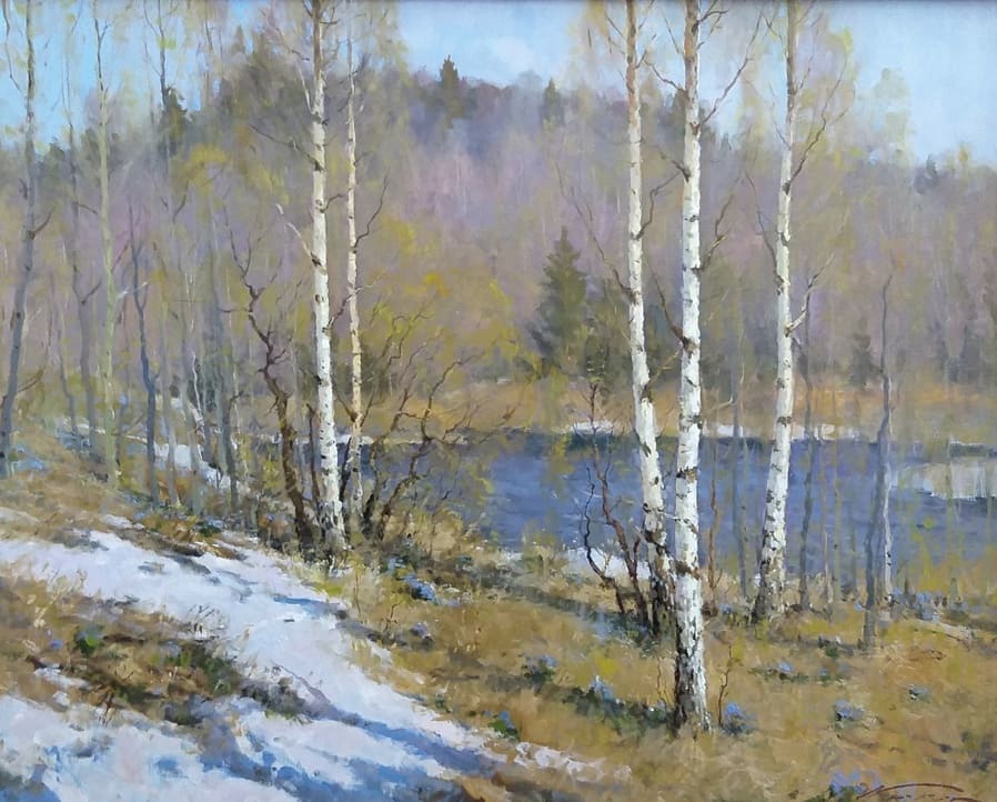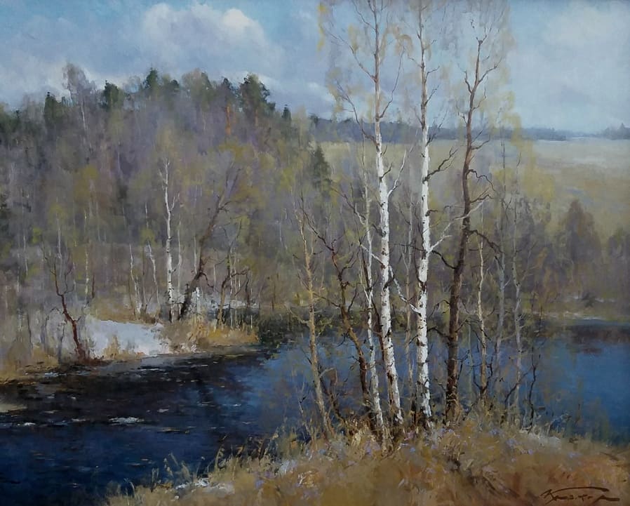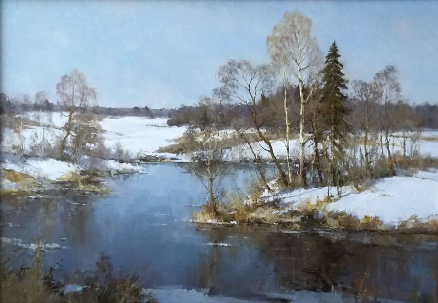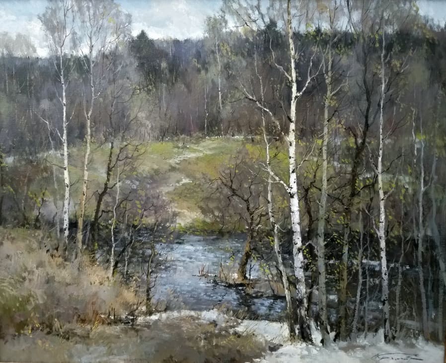 Все работы художников Кремер - здесь Династия художников Кремер: Александр Маркович Кремер (Россия, 1958) ВесеннеПейзажное (часть-4) Над деревней кружИтся снежок, Кое - где в окнах свет загорается. За околицей серый лесок С нетерпеньем весны дожидается. Лес тоскует по ярким цветам, Что ковром по весне расстилаются, И по солнечным тёплым лучам, Вся природа от них просыпается. Не слыхать в лесу щебета птиц, В край чужой улетели по осени. Навещают лес стайки синиц, Да и те в стужу лютую бросили. У колодца собрался народ Разговоры ведут о политике. Нелегко их деревня живёт, Не доходит до власти их критика. Нецензурная брань мужиков, То и дело до леса доносится, Да мычанье коров из хлевов, Попастись на луга видно просятся. В синем небе плывут облака, На зверушек различных похожие И казалось, что чья - то рука Начертила рисунки пригожие. Скоро, скоро наступит весна И предстанет пред нами красивая. Вмиг природу изменит она, Запоют ручейки говорливые. (© Copyright: Татьяна Комиссарова)