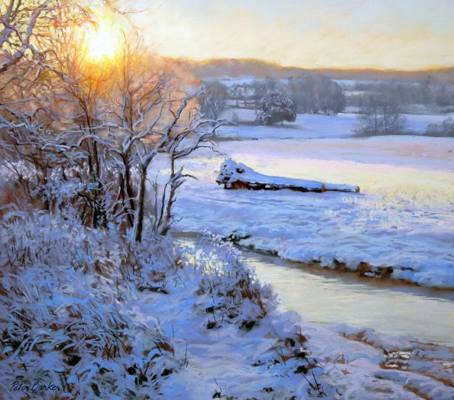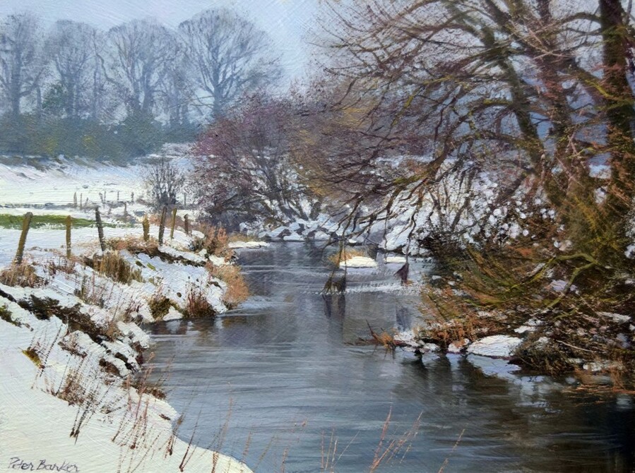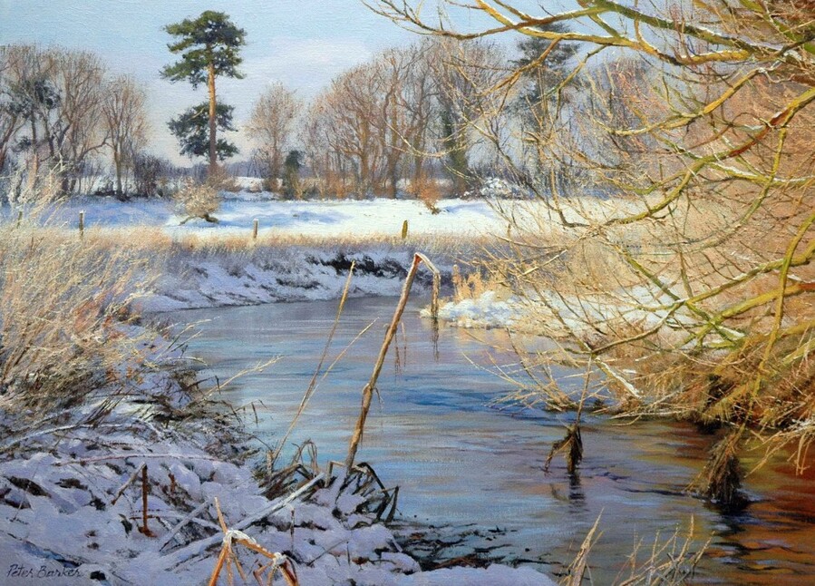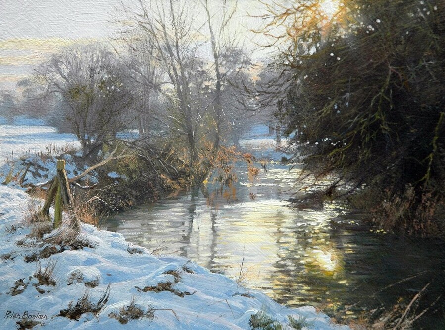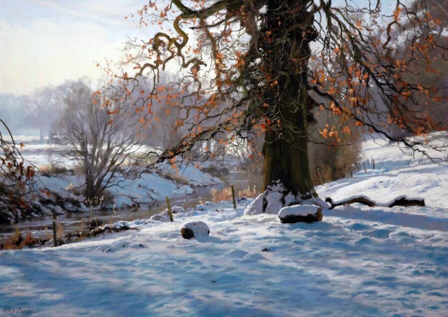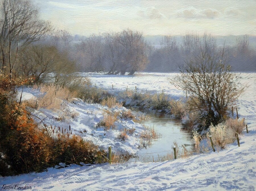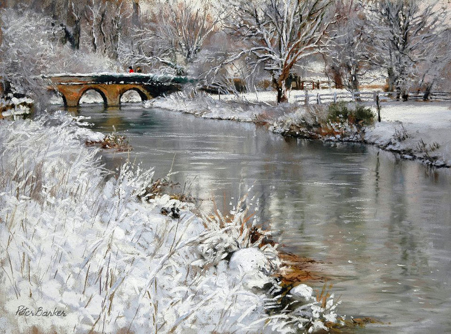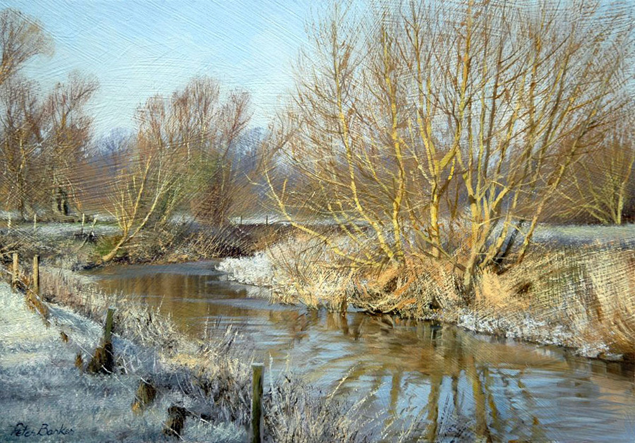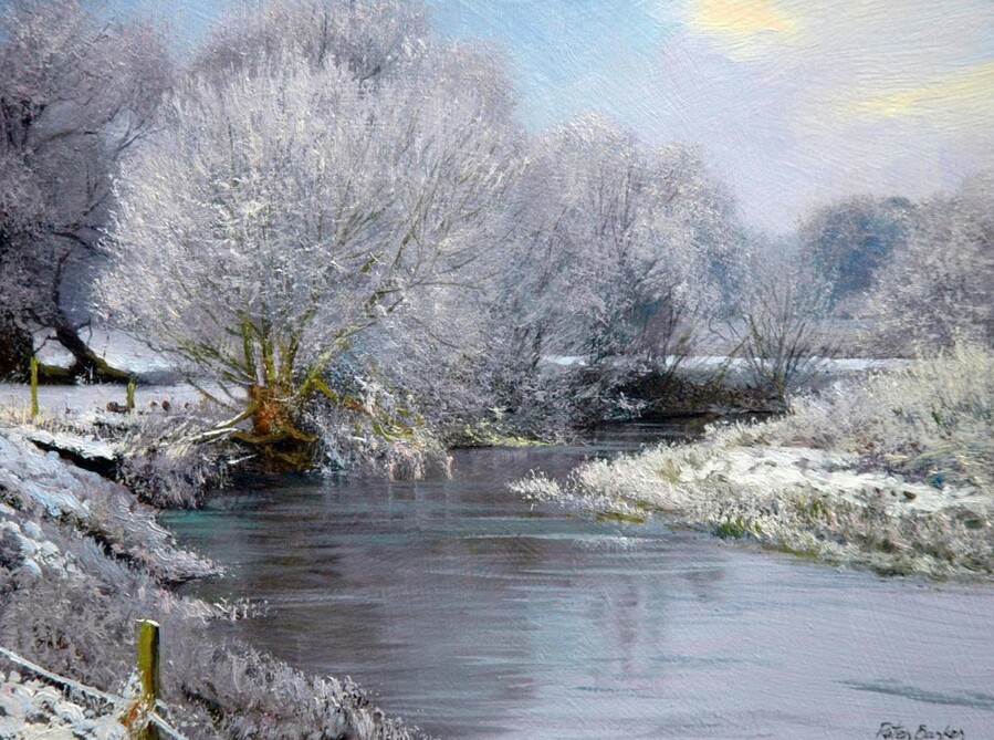 Питер пишет в основном маслом, а иногда пастелью и акварелью, и особенно известен своим реалистичным изображением воды и умение создавать поразительные изображения листвы и растительности деревьев с помощью 1-дюймовой кисти декоратора для сада и огорода.