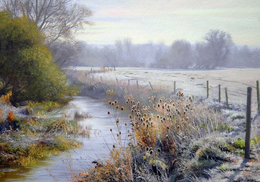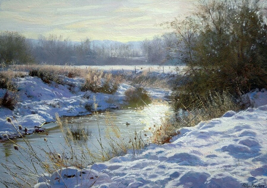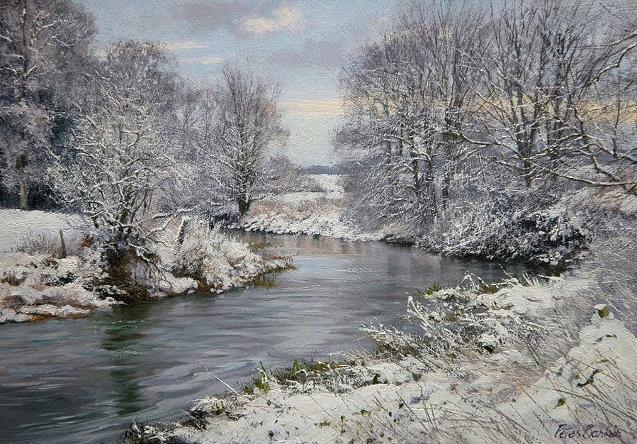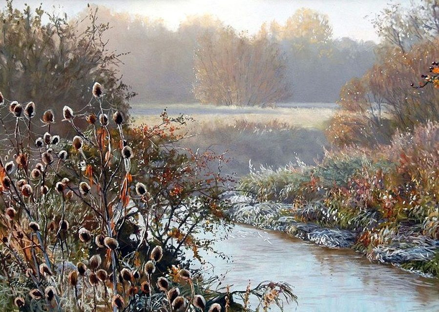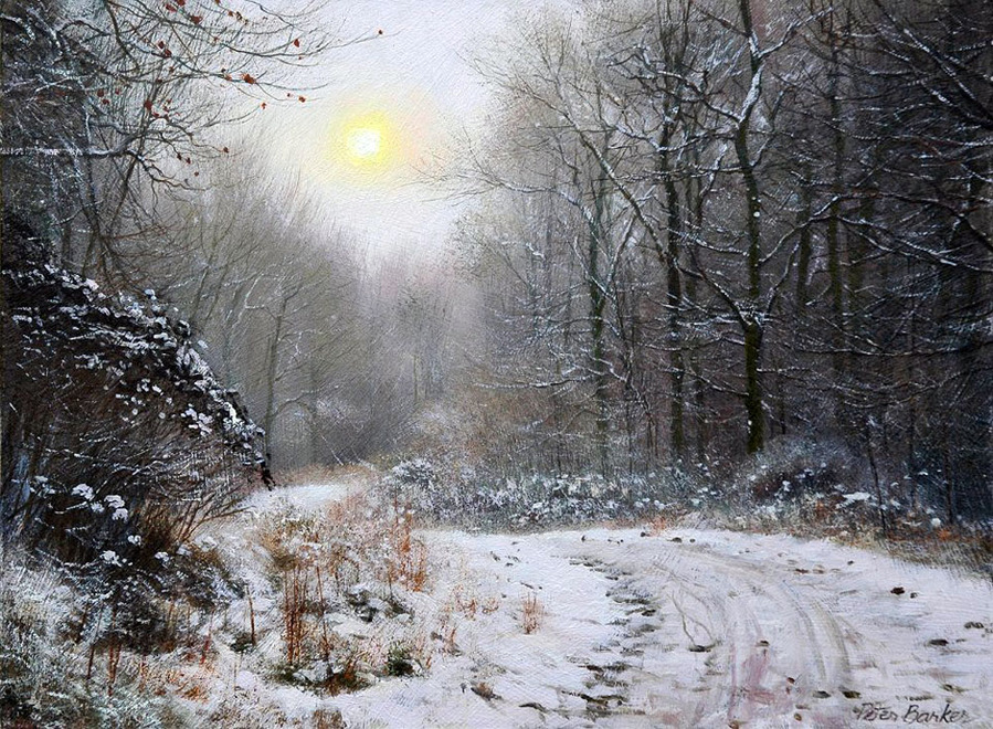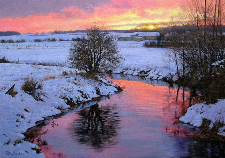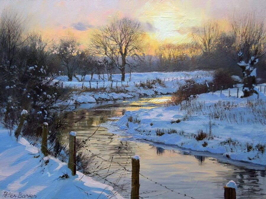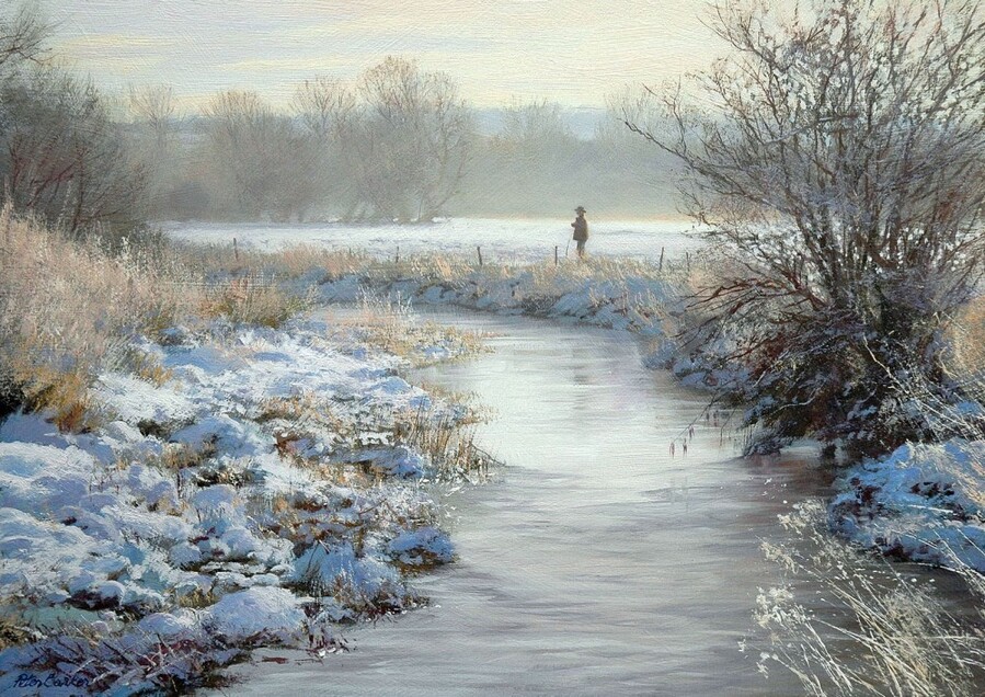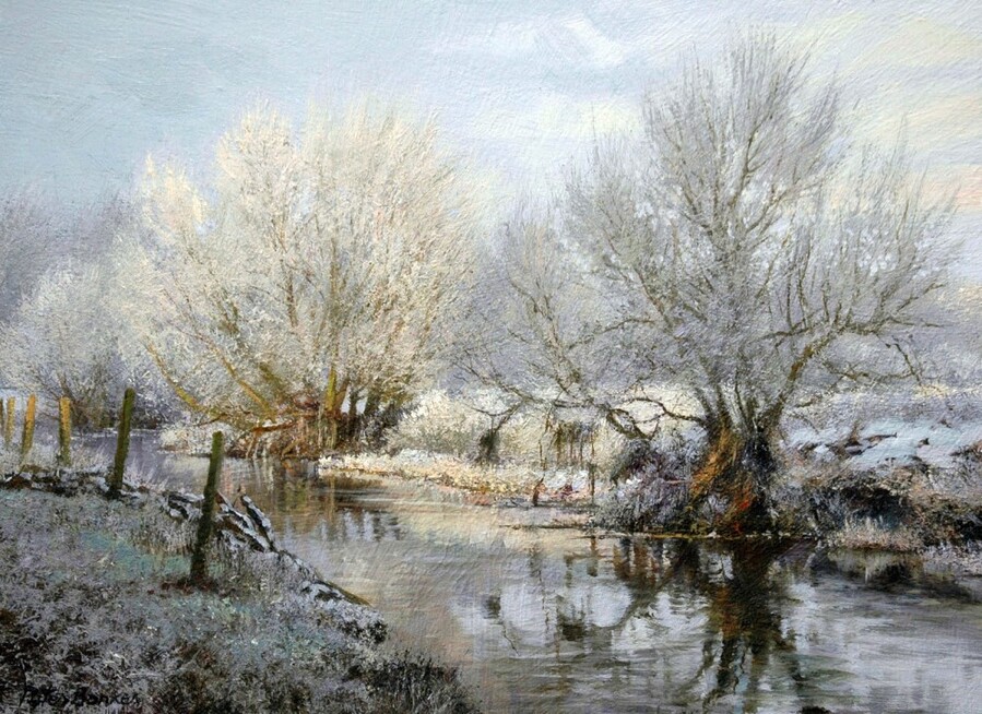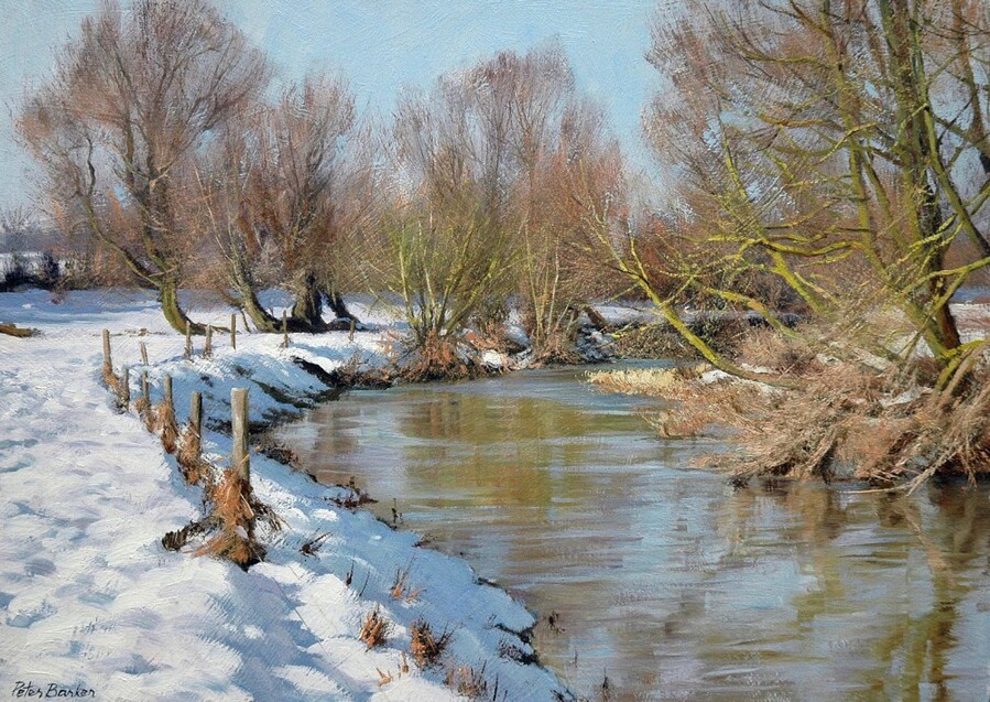 Питер пишет в основном маслом, а иногда пастелью и акварелью, и особенно известен своим реалистичным изображением воды и умение создавать поразительные изображения листвы и растительности деревьев с помощью 1-дюймовой кисти декоратора для сада и огорода.