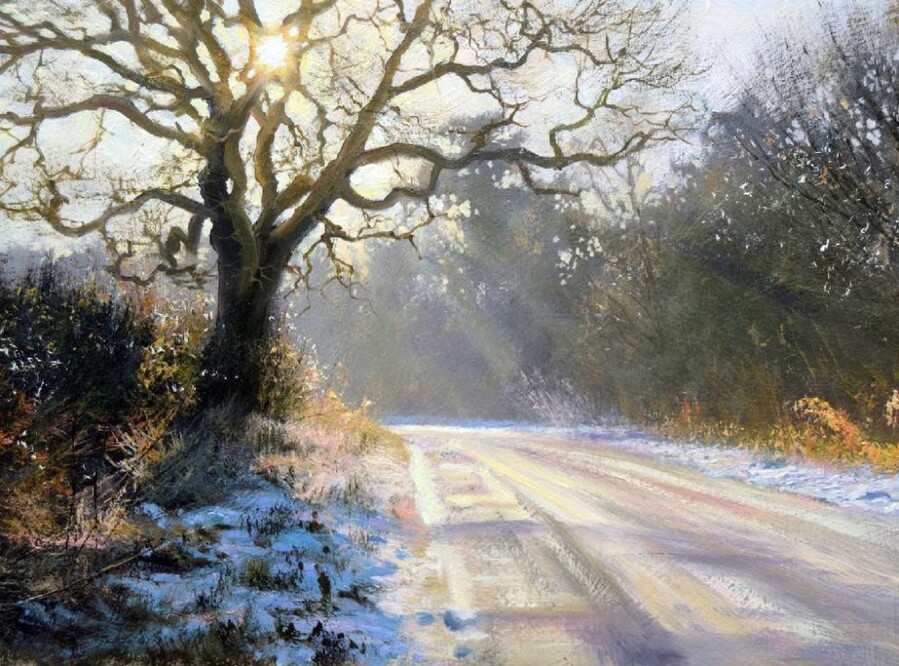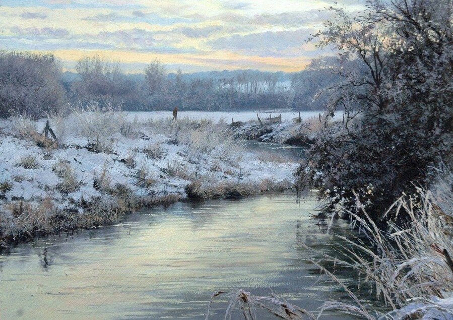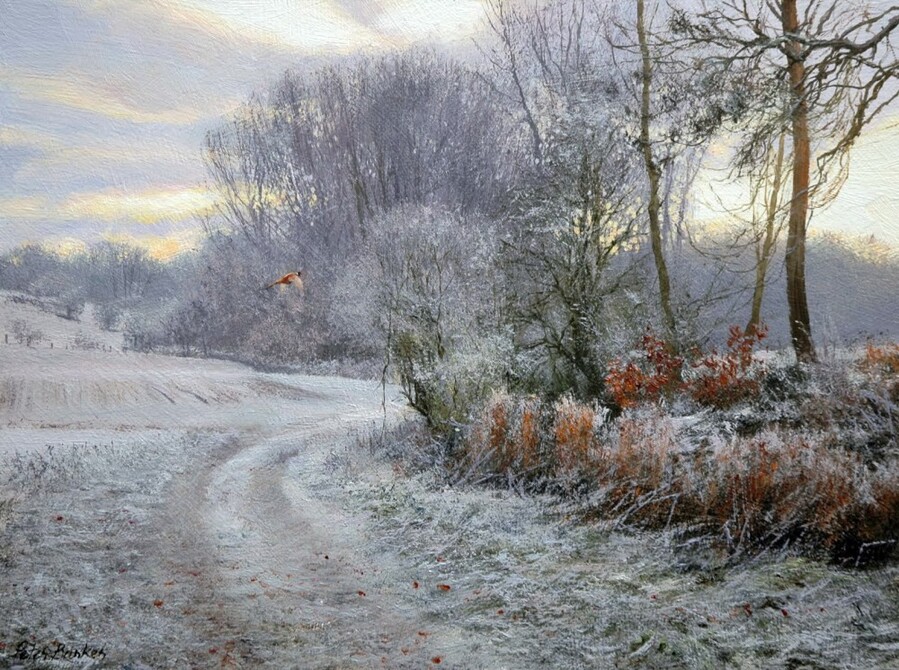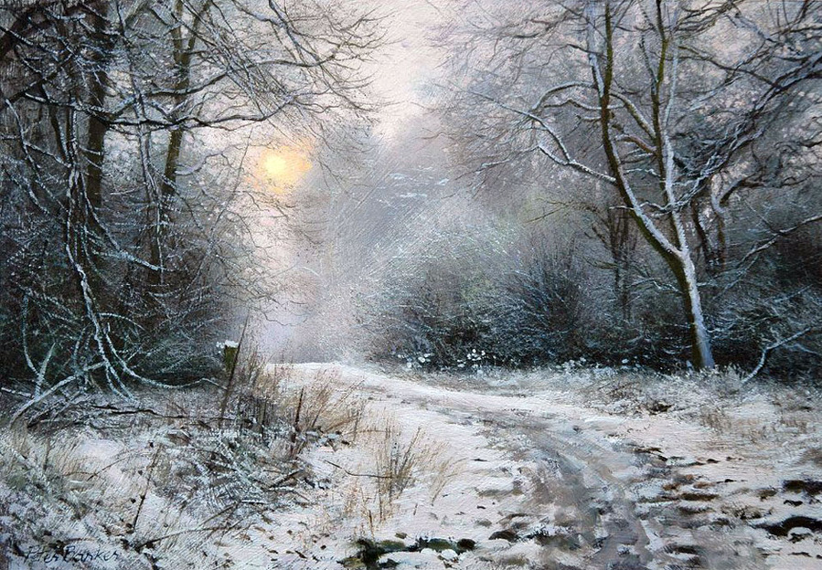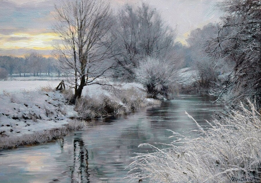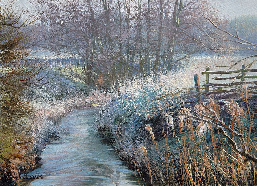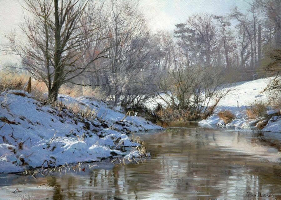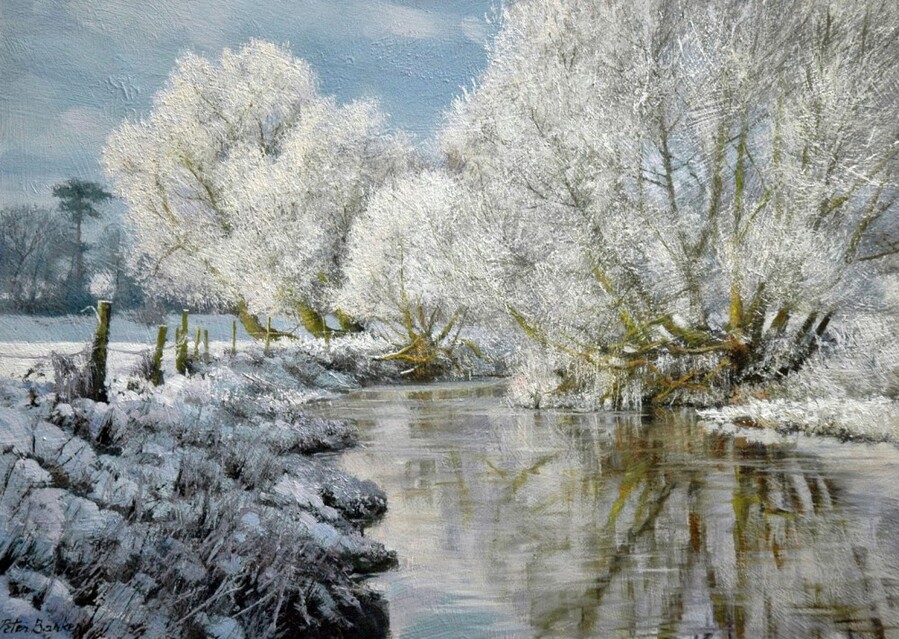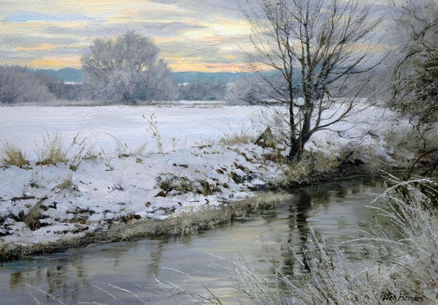 Питер пишет в основном маслом, а иногда пастелью и акварелью, и особенно известен своим реалистичным изображением воды и умение создавать поразительные изображения листвы и растительности деревьев с помощью 1-дюймовой кисти декоратора для сада и огорода.