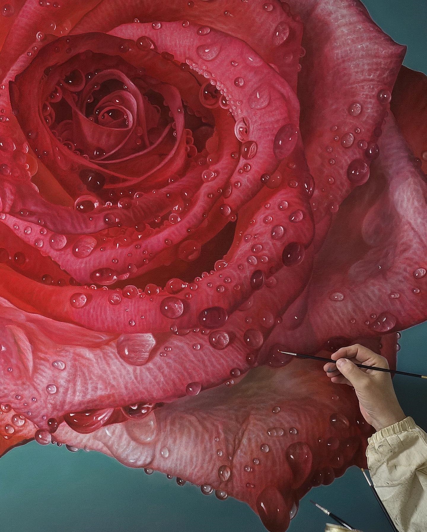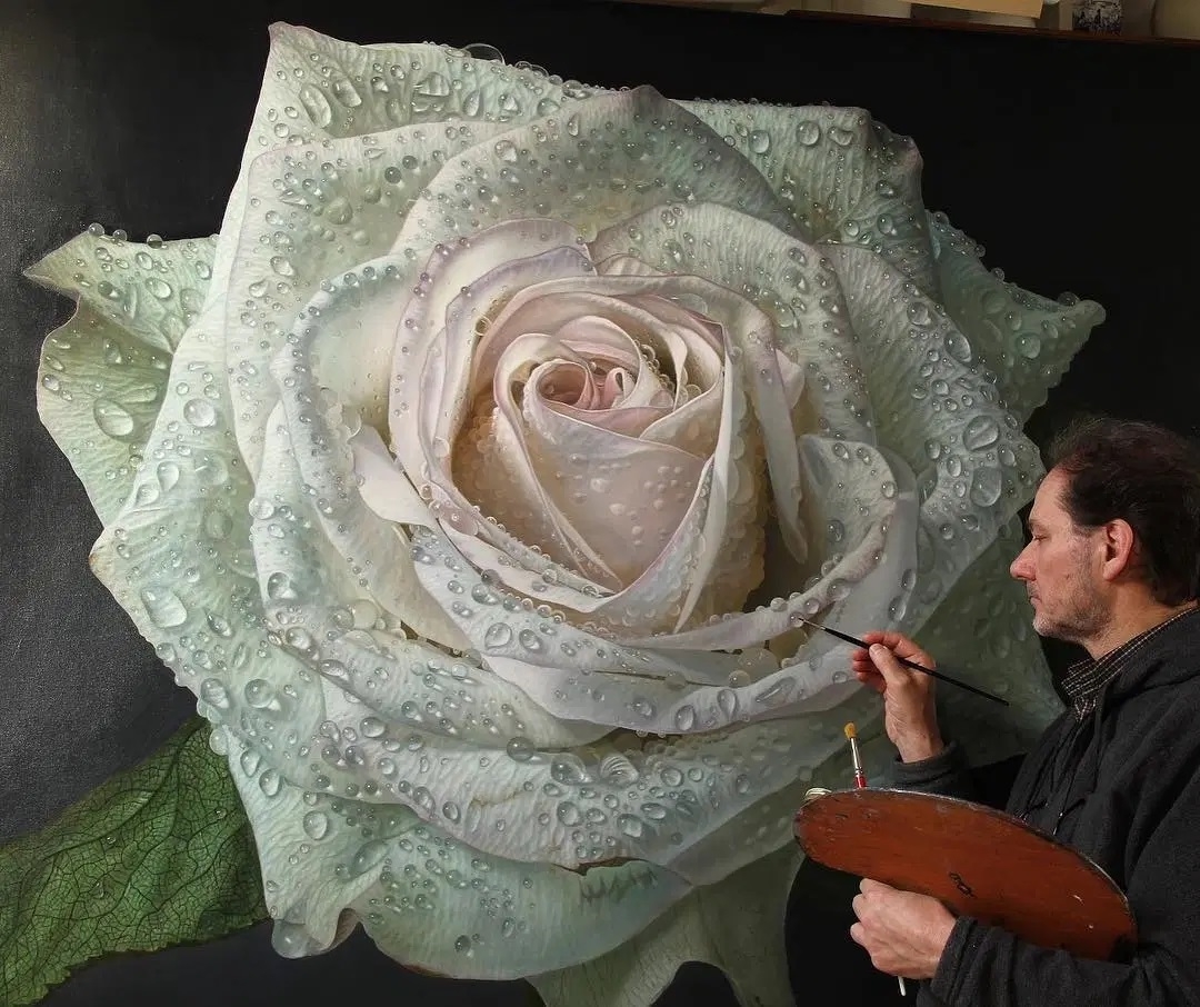Passini’s large-scale paintings not only offer audiences an in-depth look at the beauty of nature, but they’re also a way for the artist himself to explore the minute details that tower above him as he paints