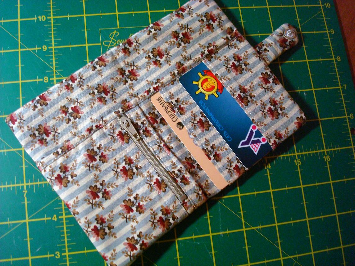 Через оставленное отверстие я пришила на внешнюю сторону кнопку и затем зашила отверстие. Все! Кошелек готов.