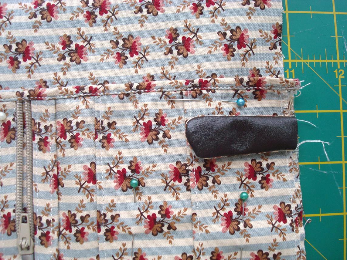 Дальше прикладываю кармашки для карточек на расстоянии примерно 2 см. от края кармашка под мелочь и пришиваем