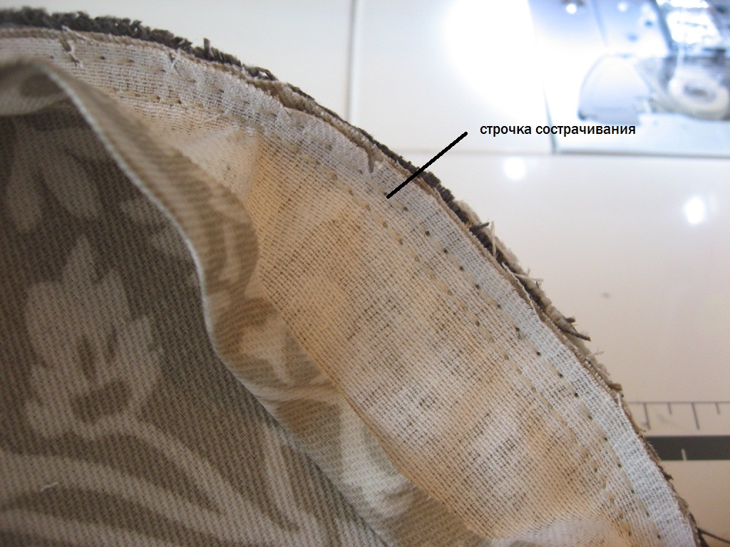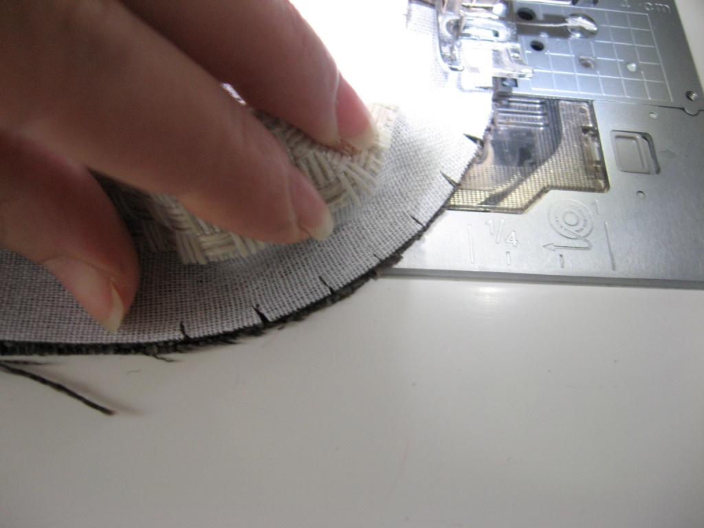 На закруглениях делаем рассечки на стенке, чтобы все красиво легло (шьем со стороны стенки, донышко снизу).