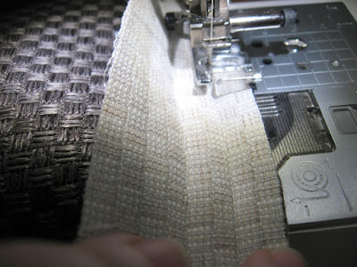 Заутюживаем продольные срезы ручки из отделочной ткани. У меня ткань в клеточку, поэтому по ней хорошо ориентироваться. Подгиб два раза по 1 см.